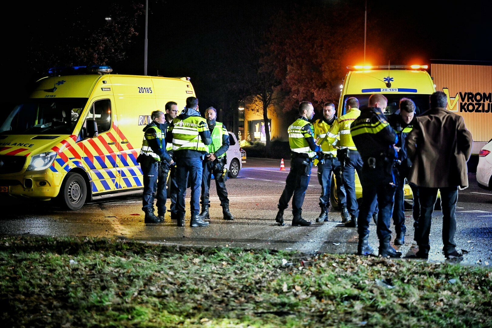 De weg was bedekt met brokstukken na het ongeluk. De politie heeft verkeersspecialisten ingezet om de toedracht van het ongeluk te onderzoeken.