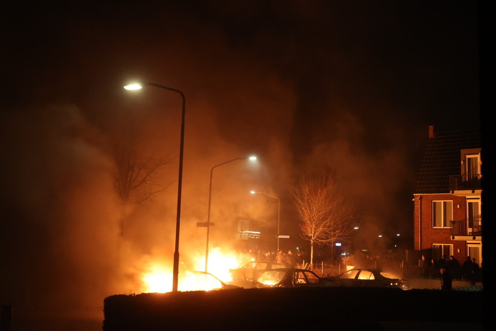 VEEN – Op de beruchte kruising de Witboomstraat in Veen zijn er tijdens de jaarwisseling rond 3.00 in totaal vijf sloopauto’s in de brand gestoken.