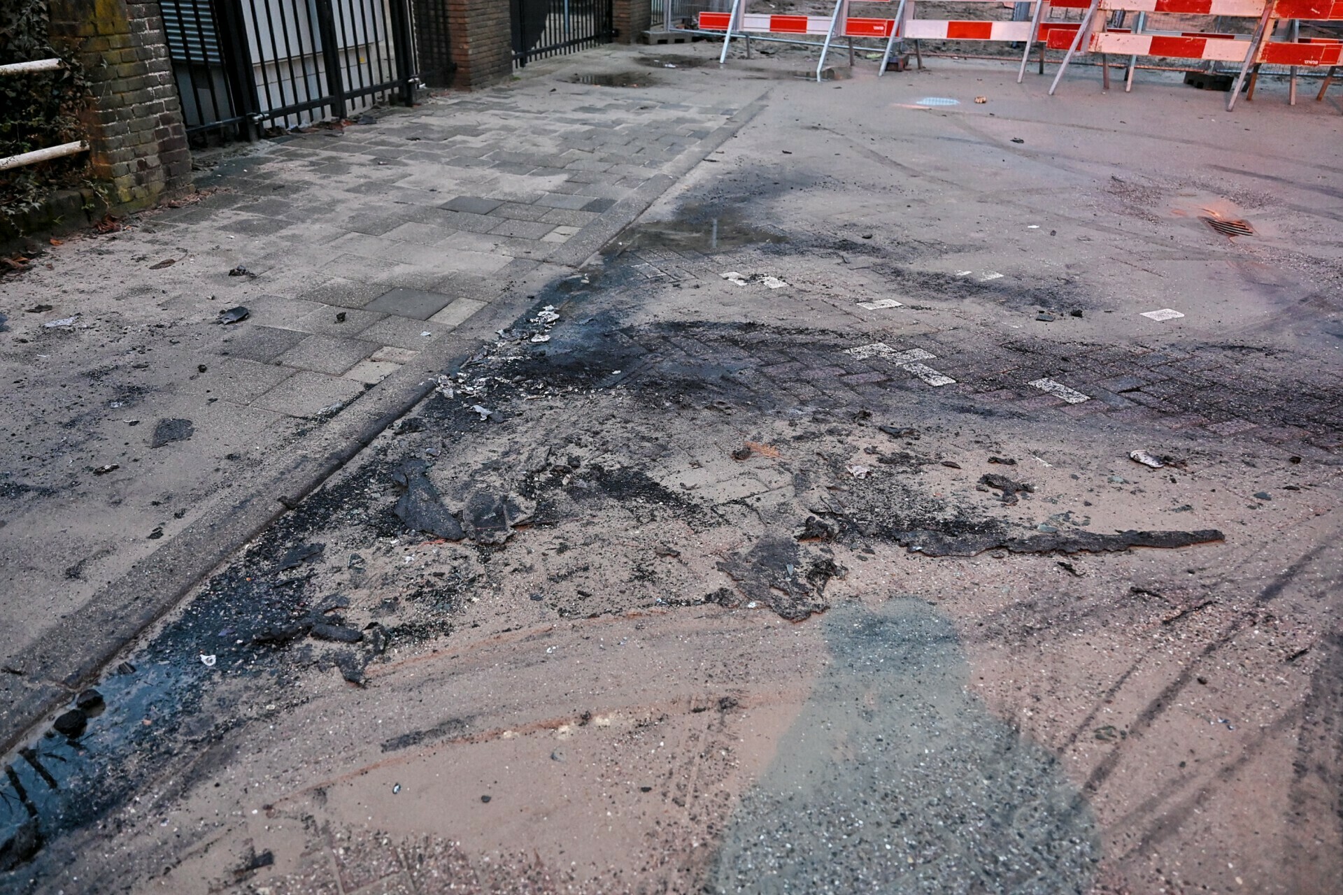 De brandweer en politie waren snel ter plaatse maar konden niet voorkomen dat de auto geheel afbranden. Een brandlucht, bezineklep en een half afgebrande jerrycan waren vanmorgen nog te ruiken en te zien. Een grote zwarte vlek op het wegdek geeft aan dat de auto flink gebrand heeft.