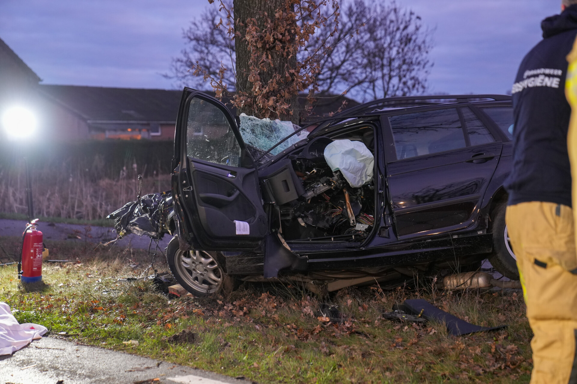 Rond 07.40 uur werd de hulpdienst massaal gealarmeerd. Een medeweggebruiker trof de auto tegen de boom aan. Ook werd een traumahelikopter opgeroepen om naar het ongeval te komen. Echter mocht alle hulp niet meer baten en overleed het slachtoffer ter plekke aan de verwondingen.