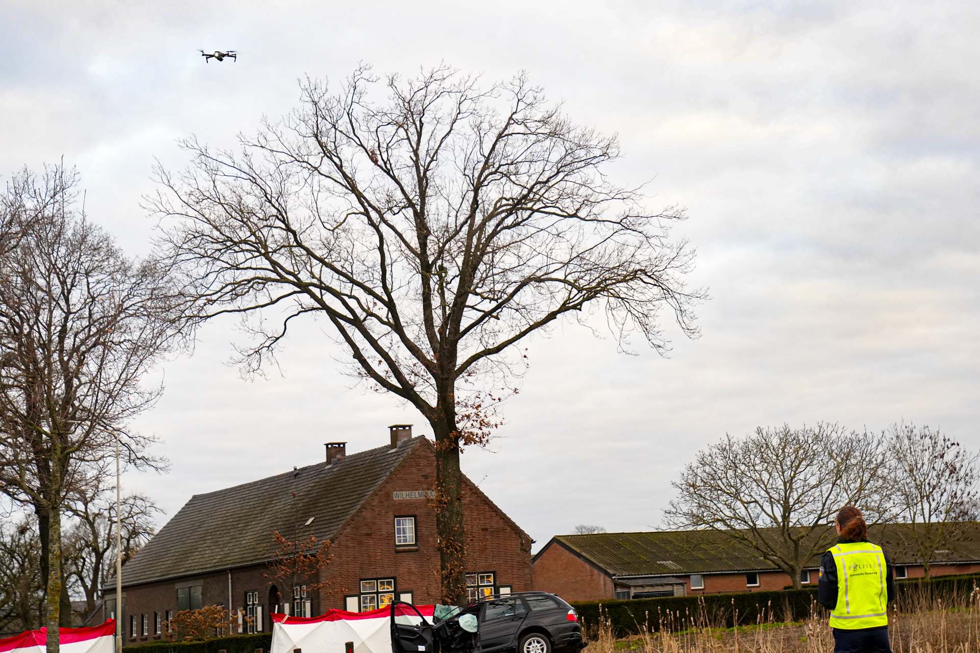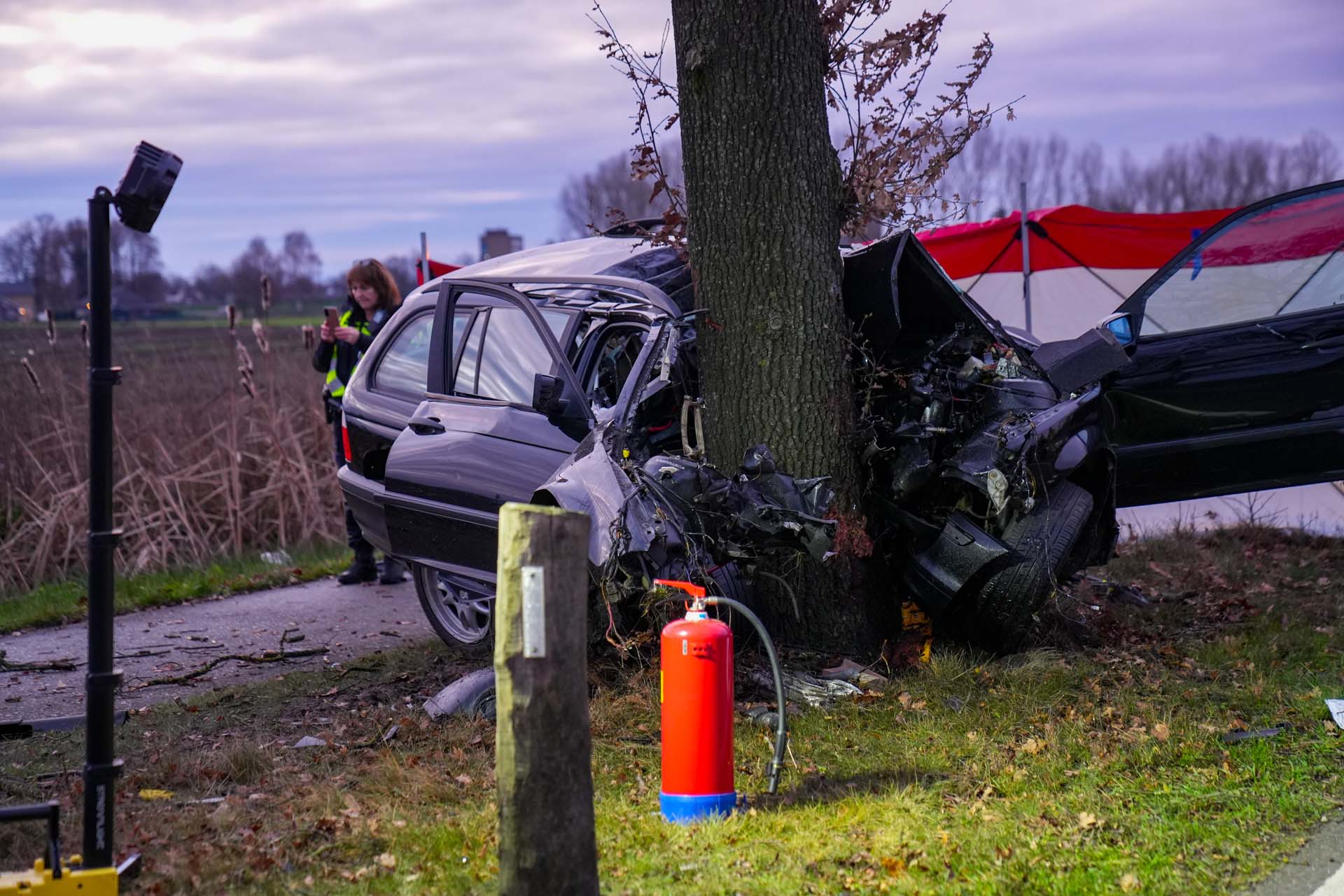 Rond 07.40 uur werd de hulpdienst massaal gealarmeerd. Een medeweggebruiker trof de auto tegen de boom aan. Ook werd een traumahelikopter opgeroepen om naar het ongeval te komen. Echter mocht alle hulp niet meer baten en overleed het slachtoffer ter plekke aan de verwondingen.