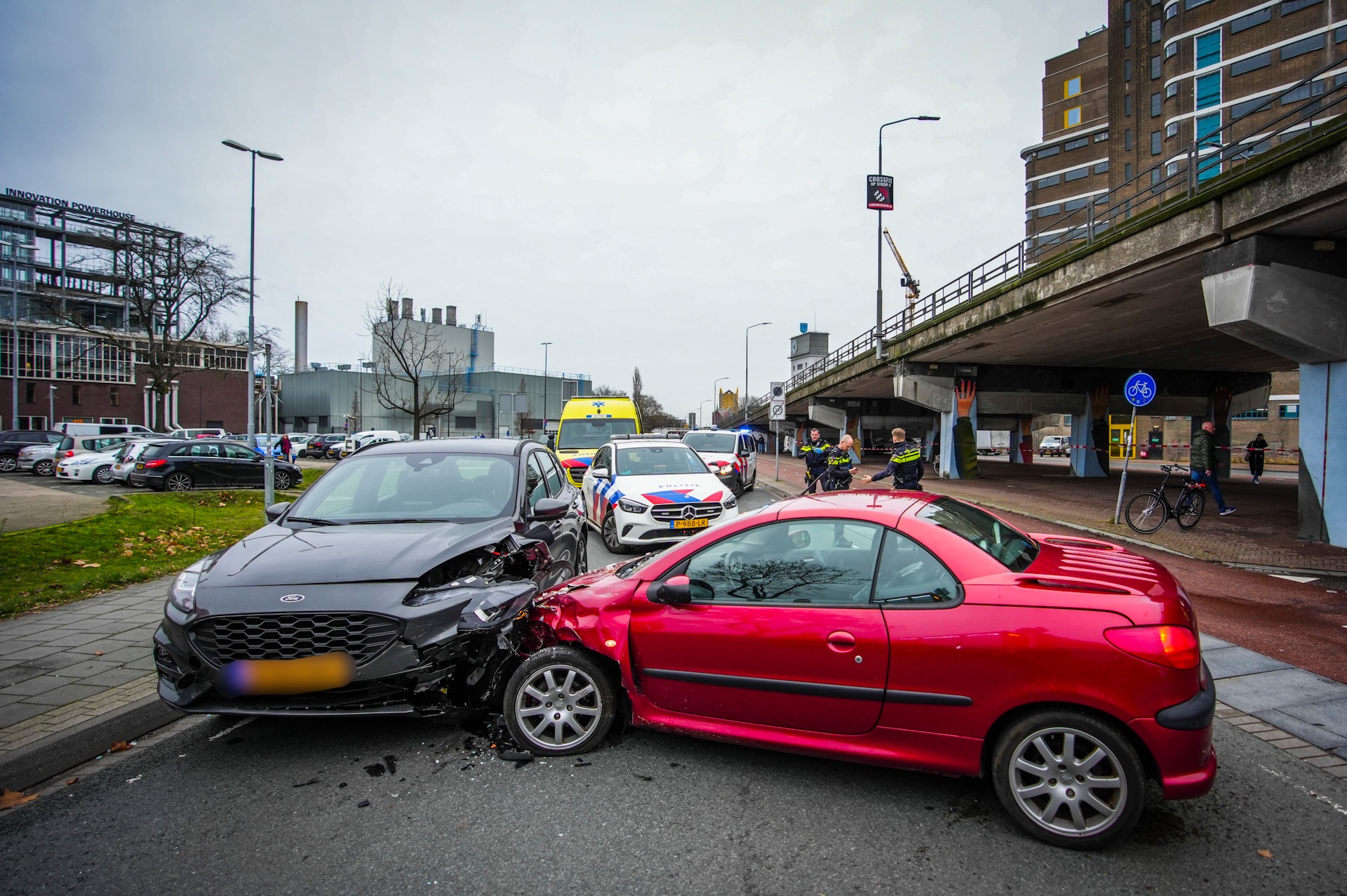 De inzittende van die auto kwam met de schrik vrij, in de andere auto werd een persoon naar het ziekenhuis gebracht met een hoofdwond, een andere werd in een vacuΓΌm matras gelegd en is ook naar het ziekenhuis gebracht.