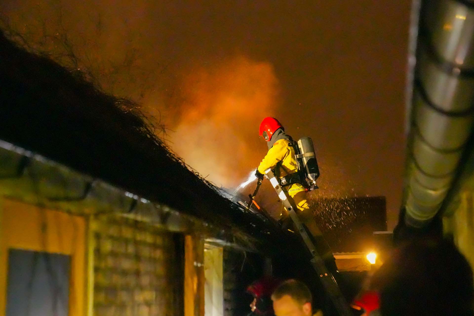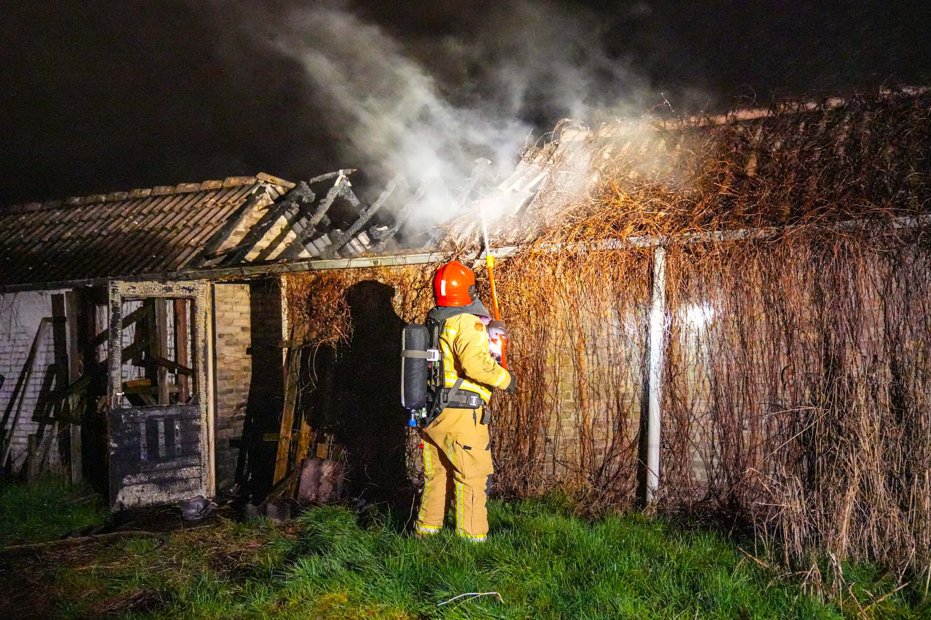 Bij aankomst van de brandweer was de brand uitslaand en zat hij al in meerdere schuurtjes. De brandweer schaalde op naar middelbrand voor een extra blusvoertuig. Samen met dit voertuig heeft de brandweer de brand onder controle kunnen krijgen. Van de acht schuren die er stonden zijn er twee afgebrand en is er één beschadigd.