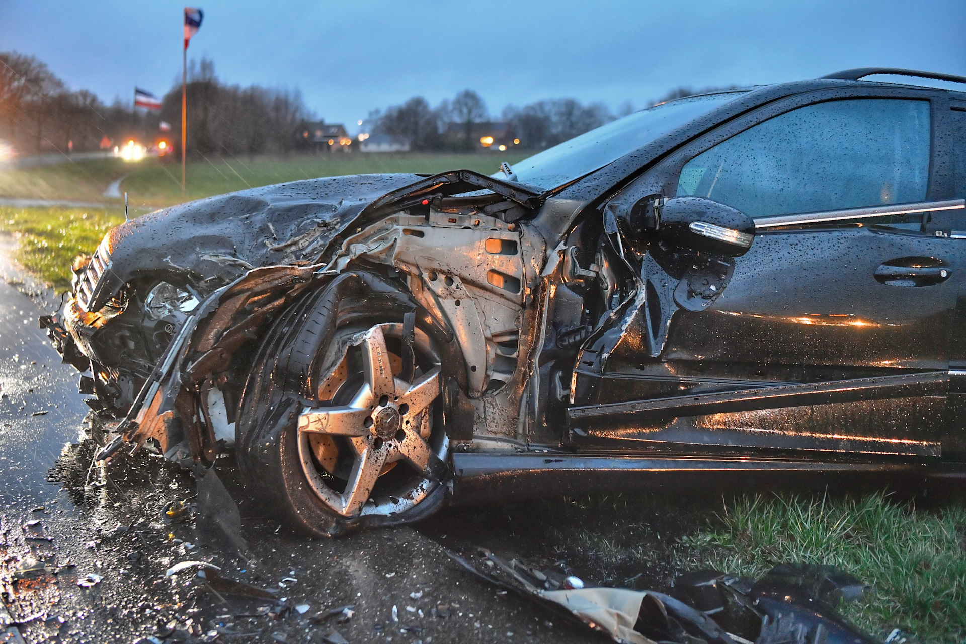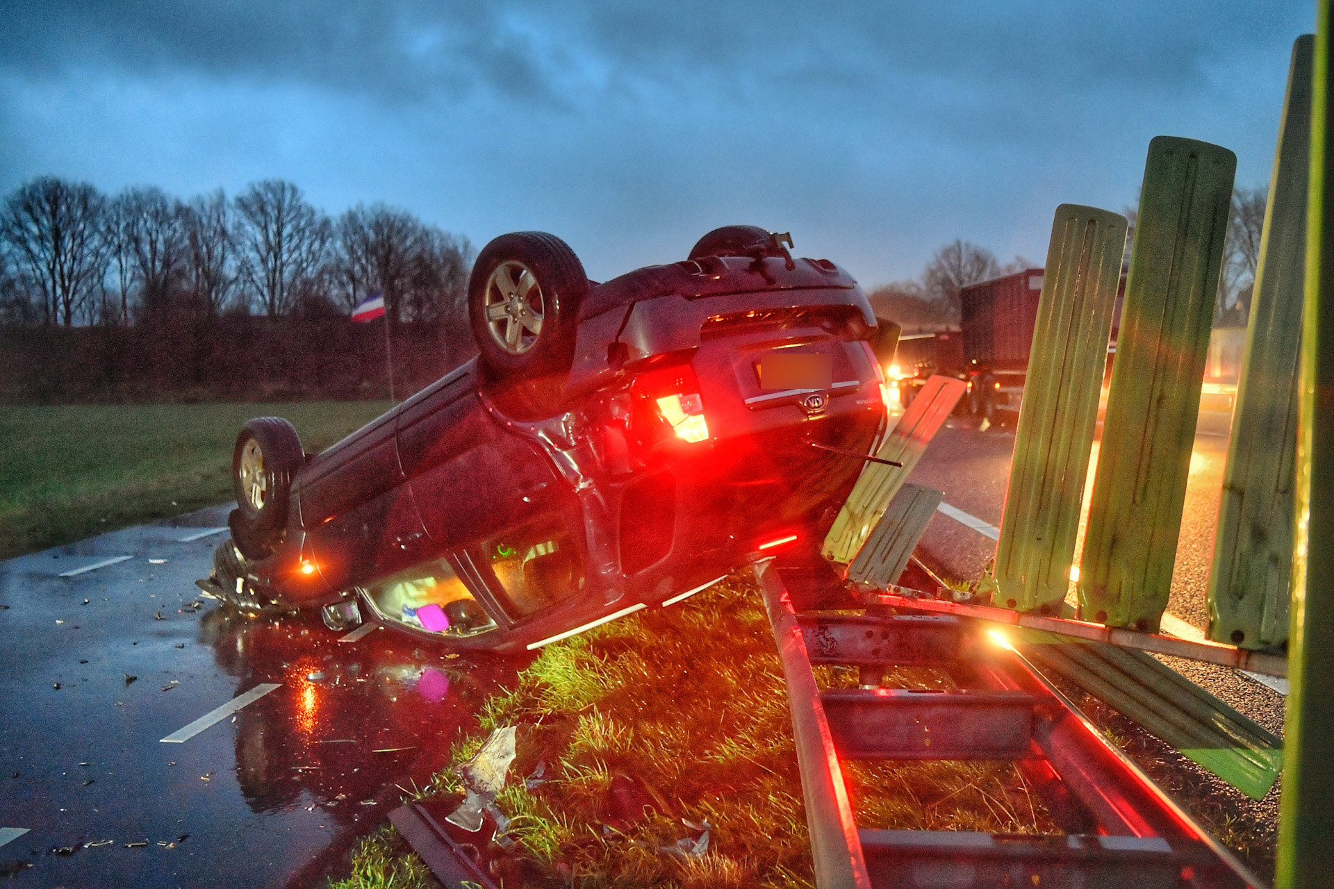 Auto slaat over de kop bij frontale aanrijding