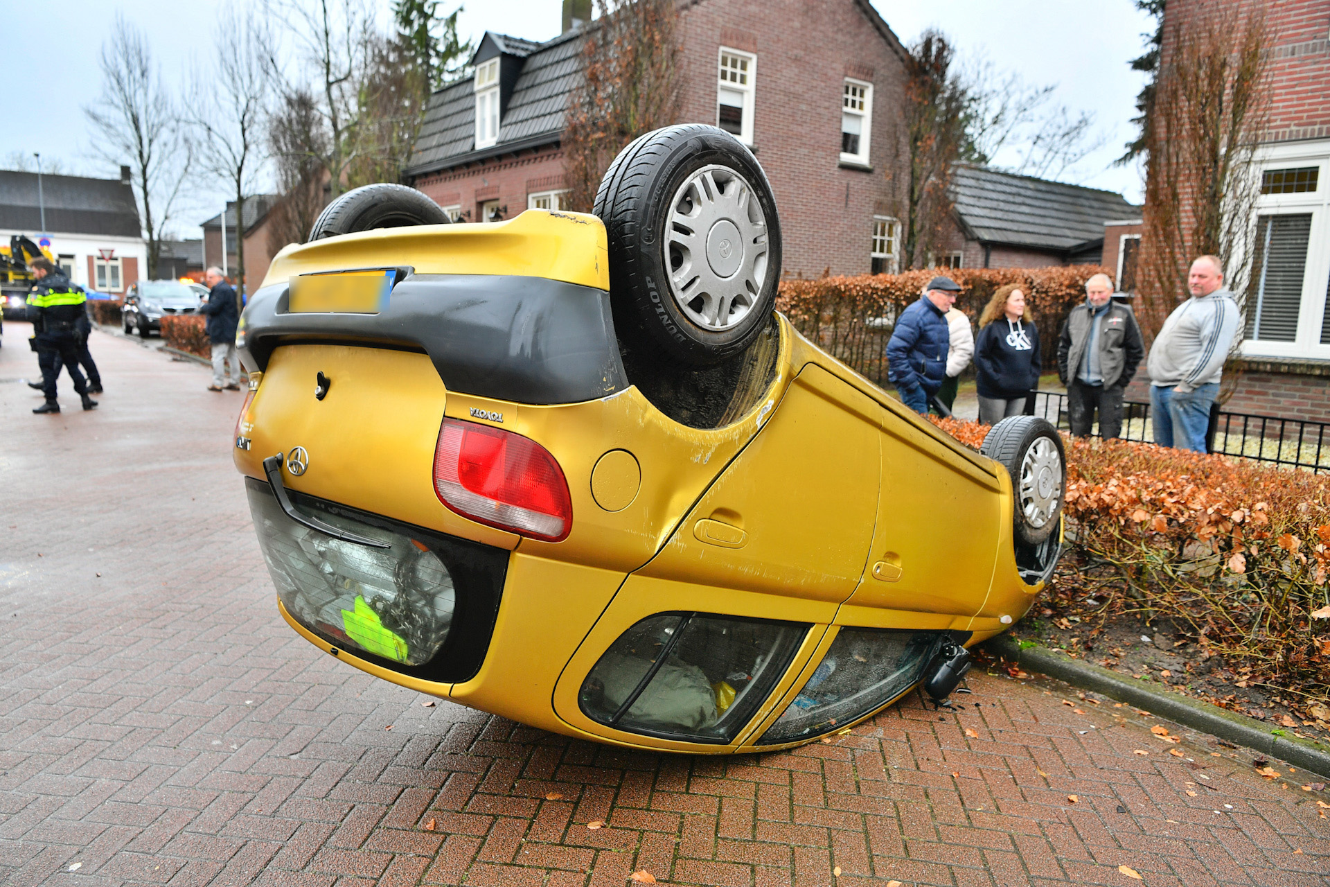 Automobiliste slaat over de kop in woonwijk
