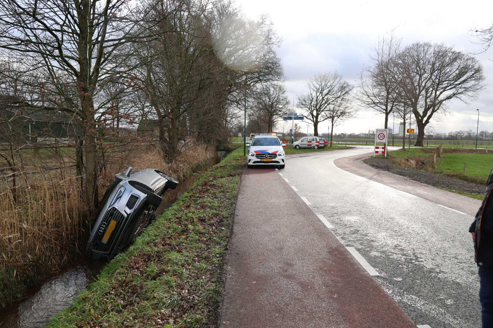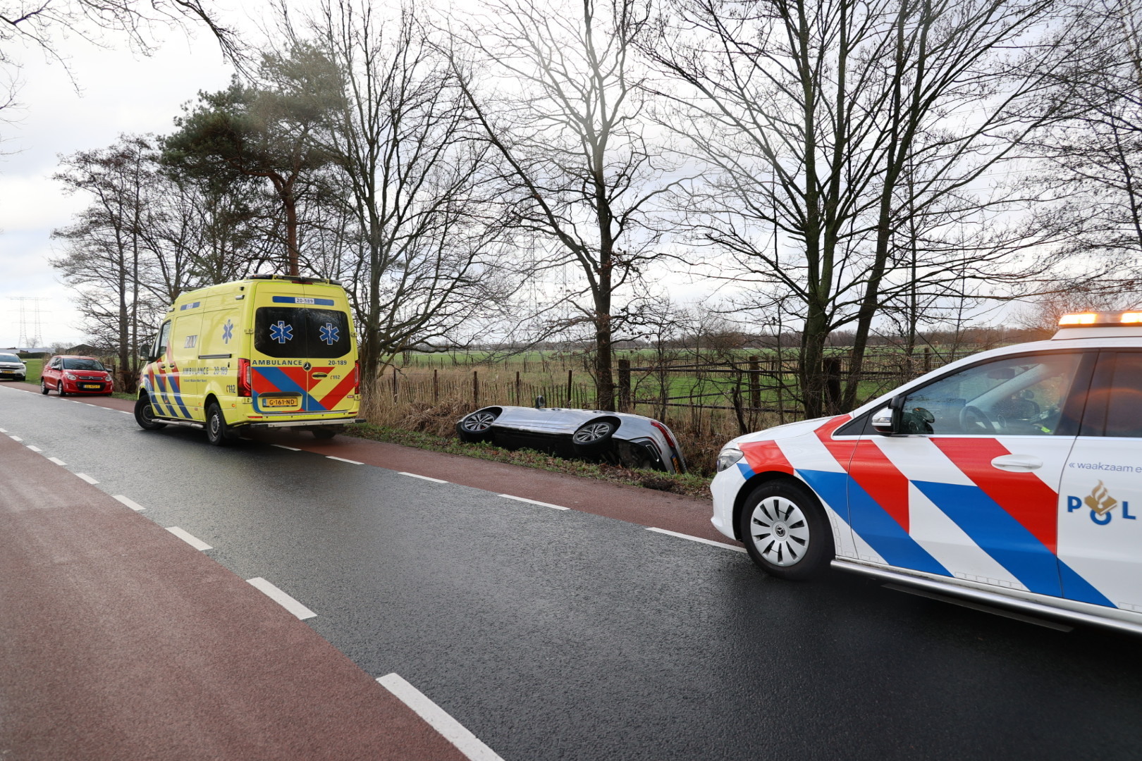 Rond 13:05 kwam de melding van het ongeval binnen bij de meldkamer. Ter plekke is een automobilist door onbekende oorzaak de macht over het stuur verloren en op de zijkant in de sloot tot stilstand gekomen. De bestuurder kon zelf uit de auto komen en raakte niet gewond.