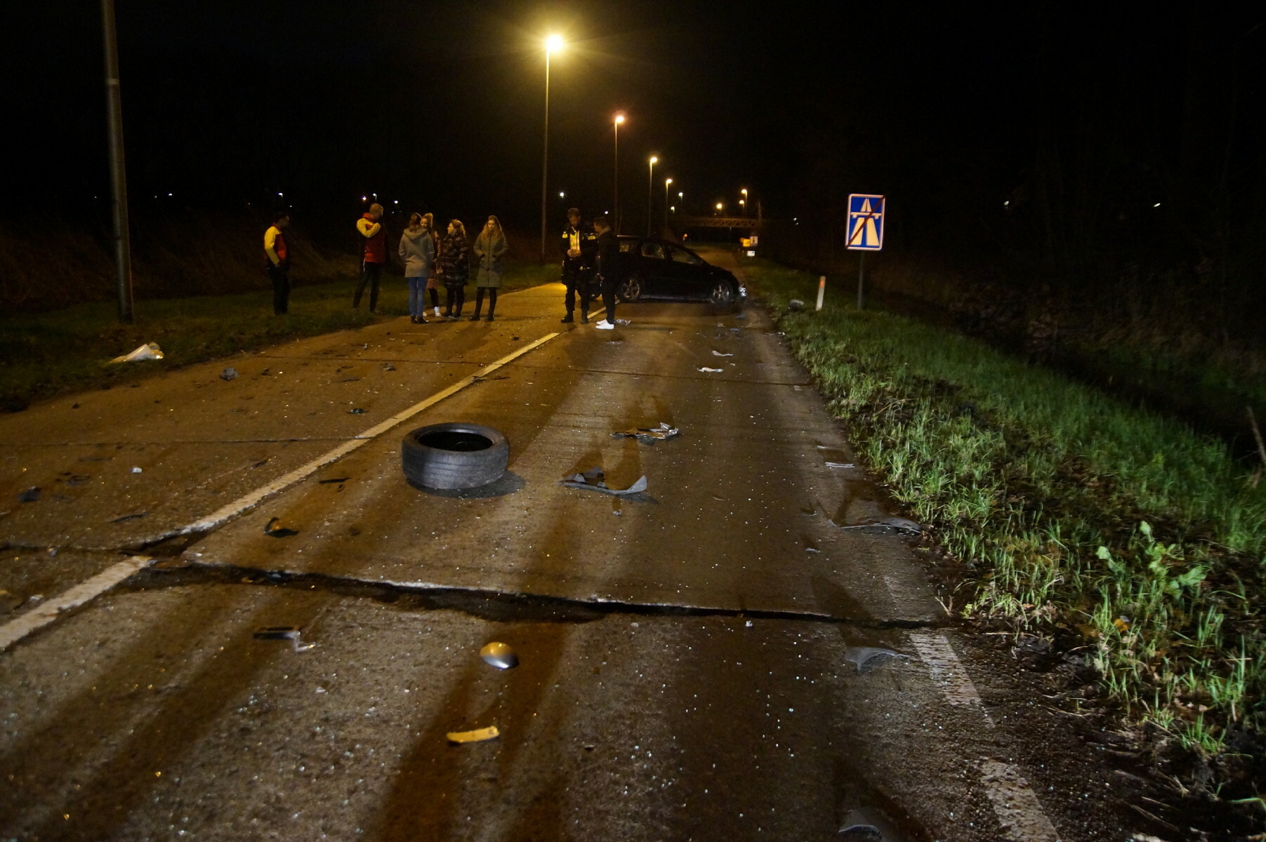 Weg bezaaid met brokstukken na fors ongeval, twee personen gewond