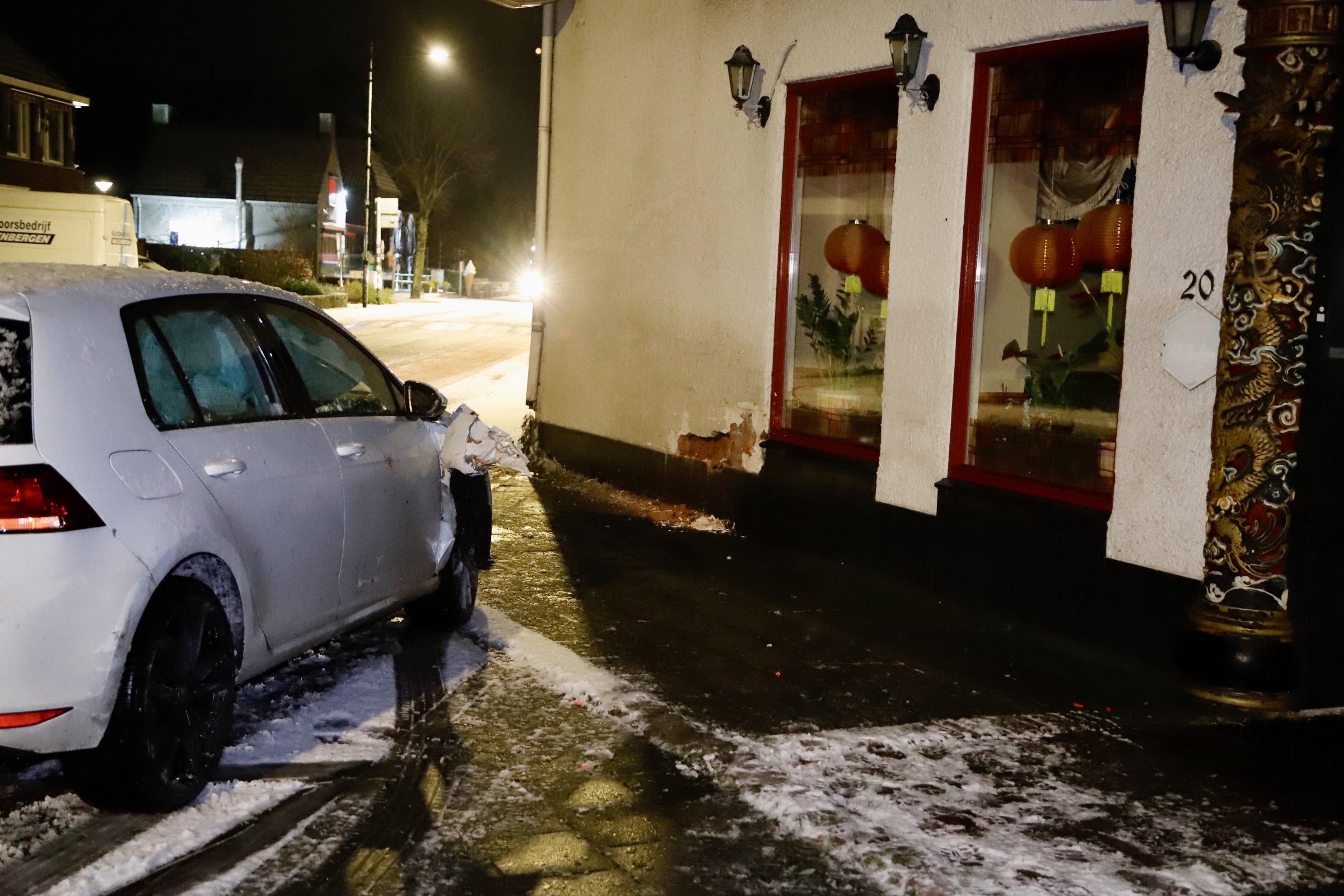 Jongeman rijdt met auto tegen restaurant door gladheid