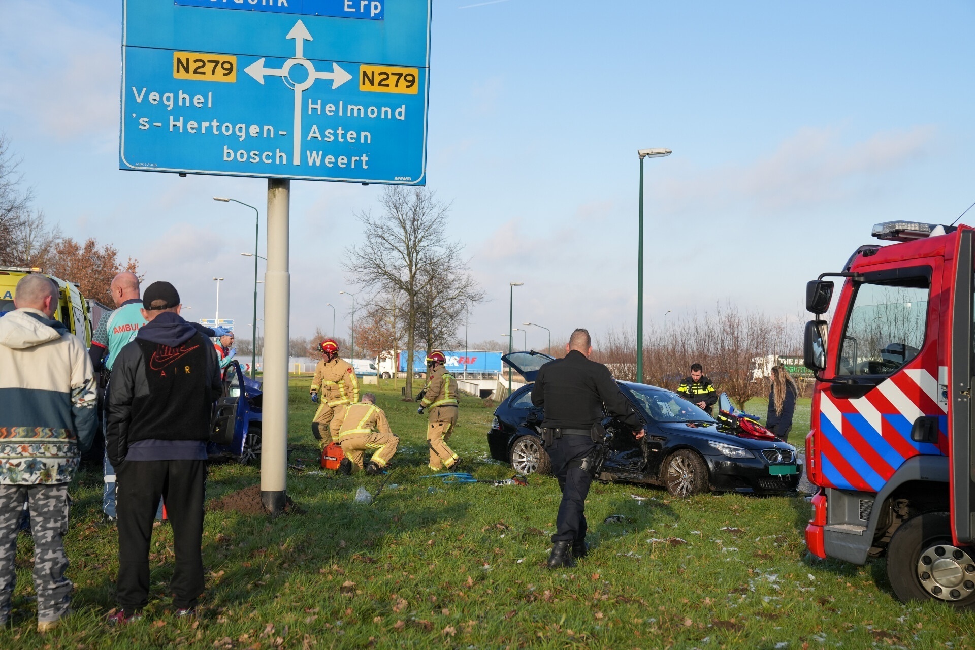 Er kwamen in totaal vier ziekenwagens naar het ongeluk toe. Ook de traumahelikopter werd opgeroepen en de gewonden werden nagekeken door de arts. Van de zes gewonden zijn er vier mee naar het ziekenhuis overgebracht. Bij het ongeluk waren in totaal drie auto’s betrokken.