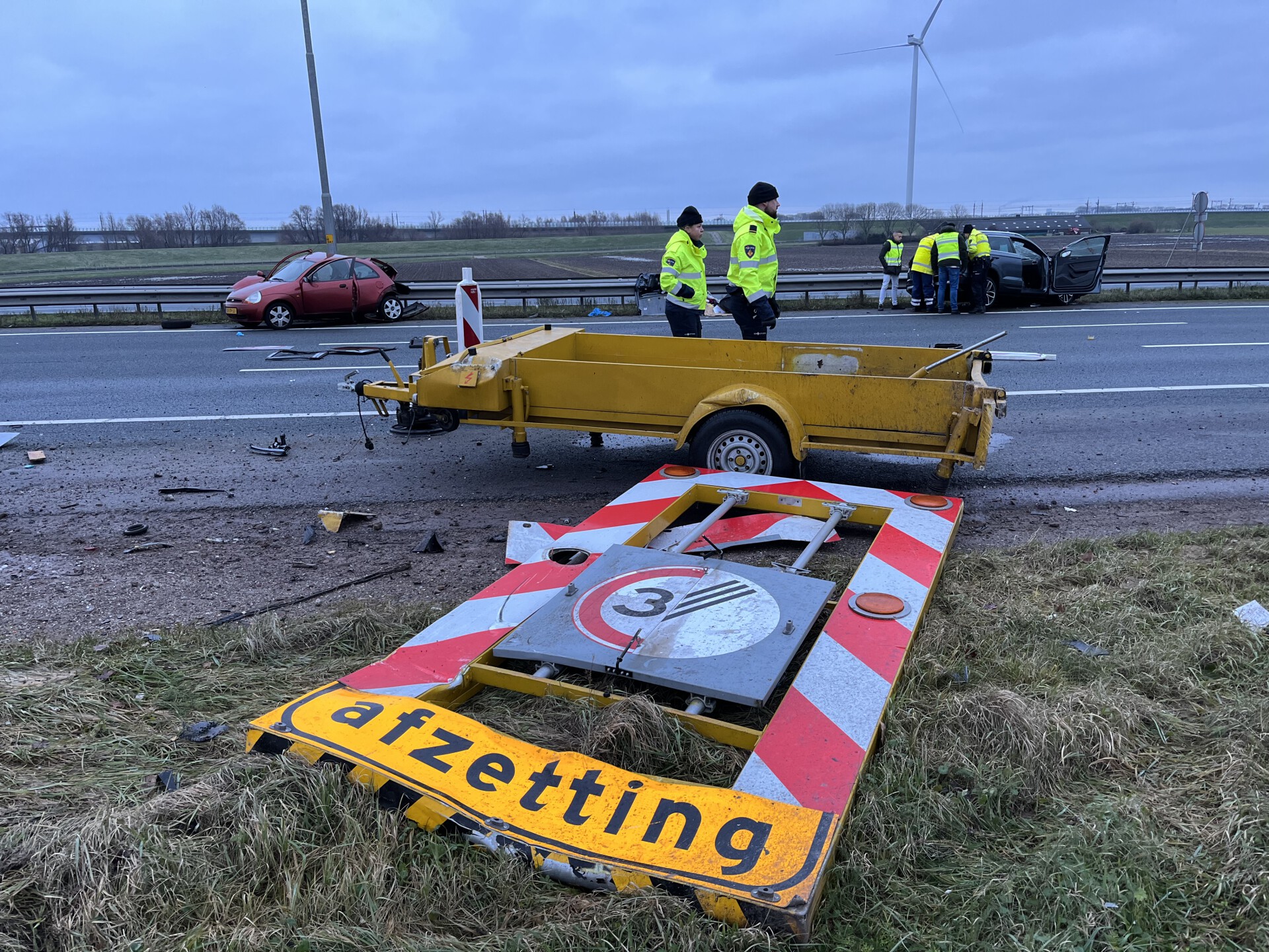 Ravage op de A16 na ongeval met twee auto’s en pijlwagen, meerdere gewonden
