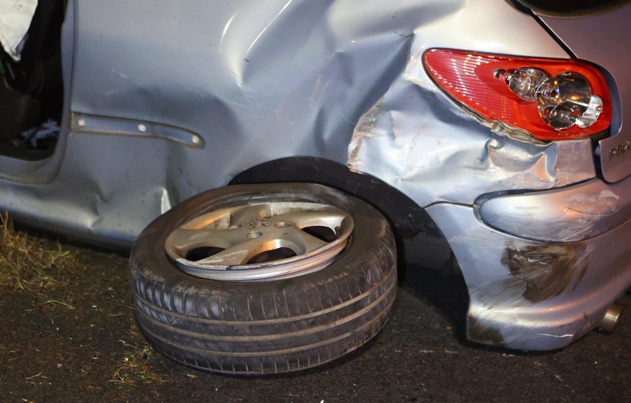 Kort voor middernacht kwam de melding van het ongeval binnen bij de meldkamer, waarna de hulpdiensten werden opgeroepen. Ter plekke raakte een automobilist de macht over het stuur kwijt nadat een wiel van de auto afbrak. Een andere weggebruiker kon dit niet meer ontwijken en de twee kwamen in botsing.