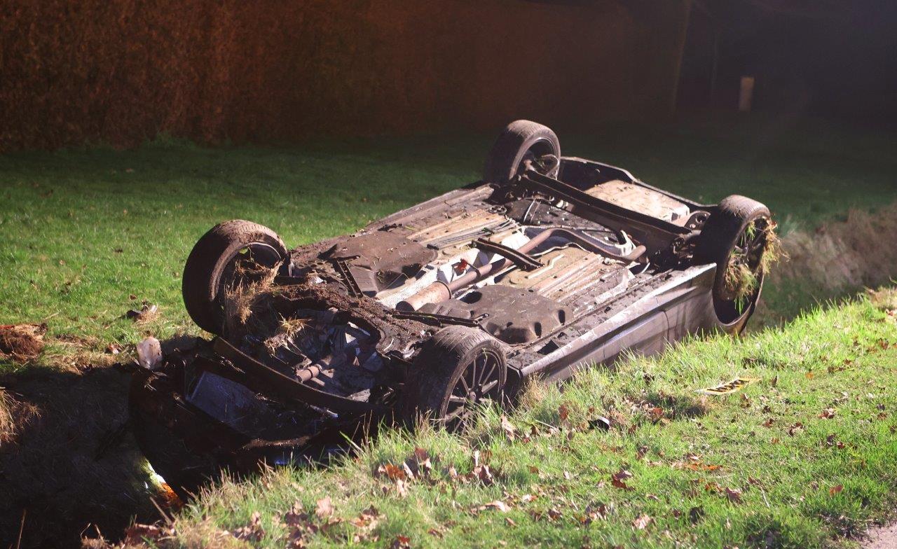Auto belandt ondersteboven in sloot, inzittenden komen met de schrik vrij