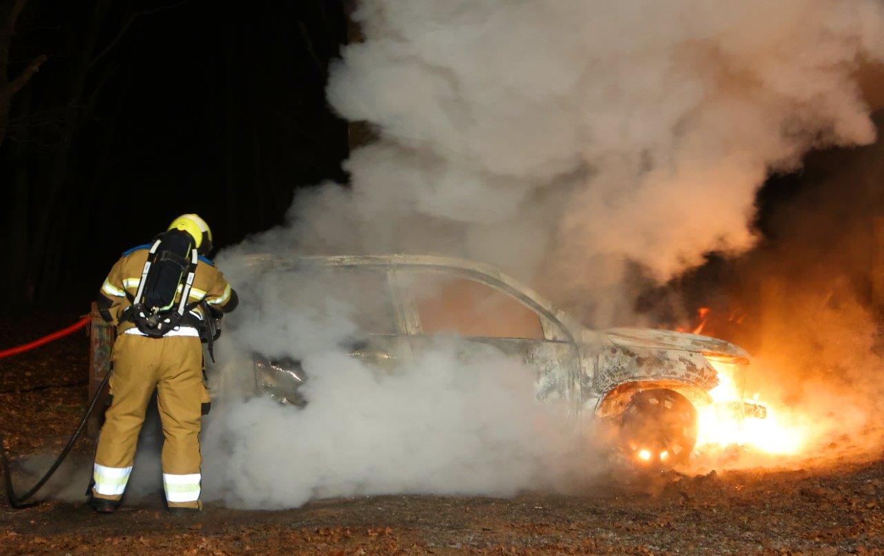 Auto gaat in vlammen op na vermoedelijk brandstichting