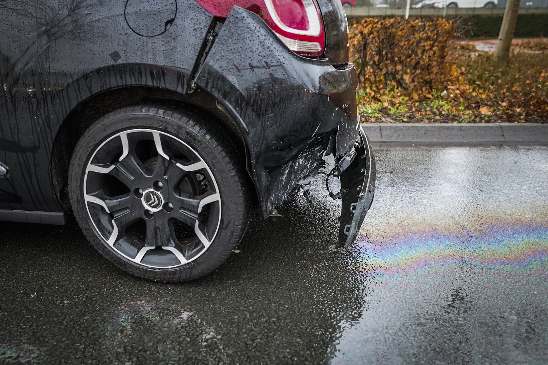 Rond 16.35 uur kwamen de twee met elkaar in botsing. De bestuurder van de felgroene Kawasaki motor raakte hierbij gewond. De bumper van de auto kwam gedeeltelijk los door de klap.