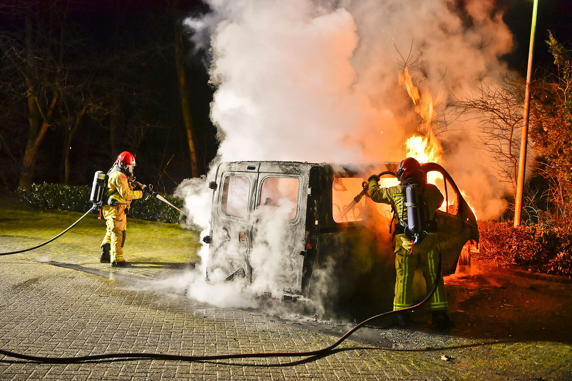 De politie onderzoekt of beide branden iets met elkaar te maken hebben. Het busje is geheel verloren en de aangelegen fauna heeft schade opgelopen.