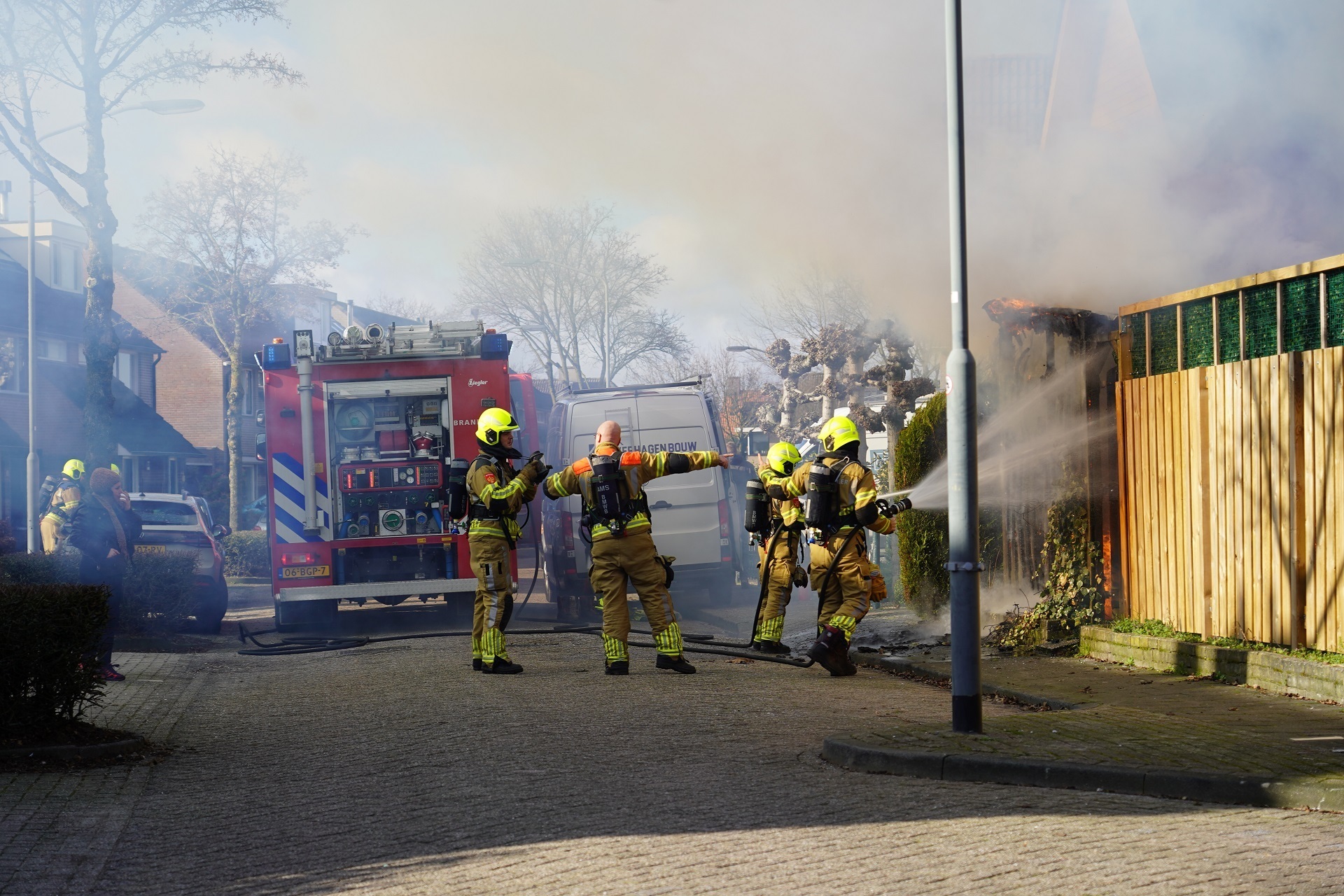 Schuur in brand achter woning, brandweer voorkomt overslag