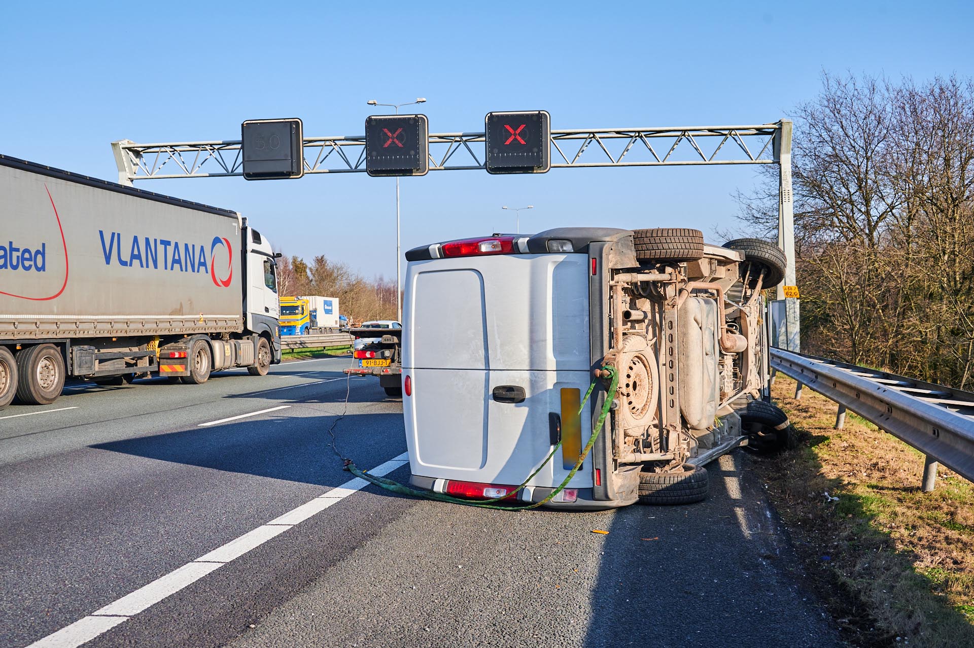Geplaatst op 14 februari 2023, om 16:09 uurBREDA – Op de A58 bij Breda is dinsdagmiddag een personenbusje op de zijkant terecht gekomen bij een eenzijdig ongeval.