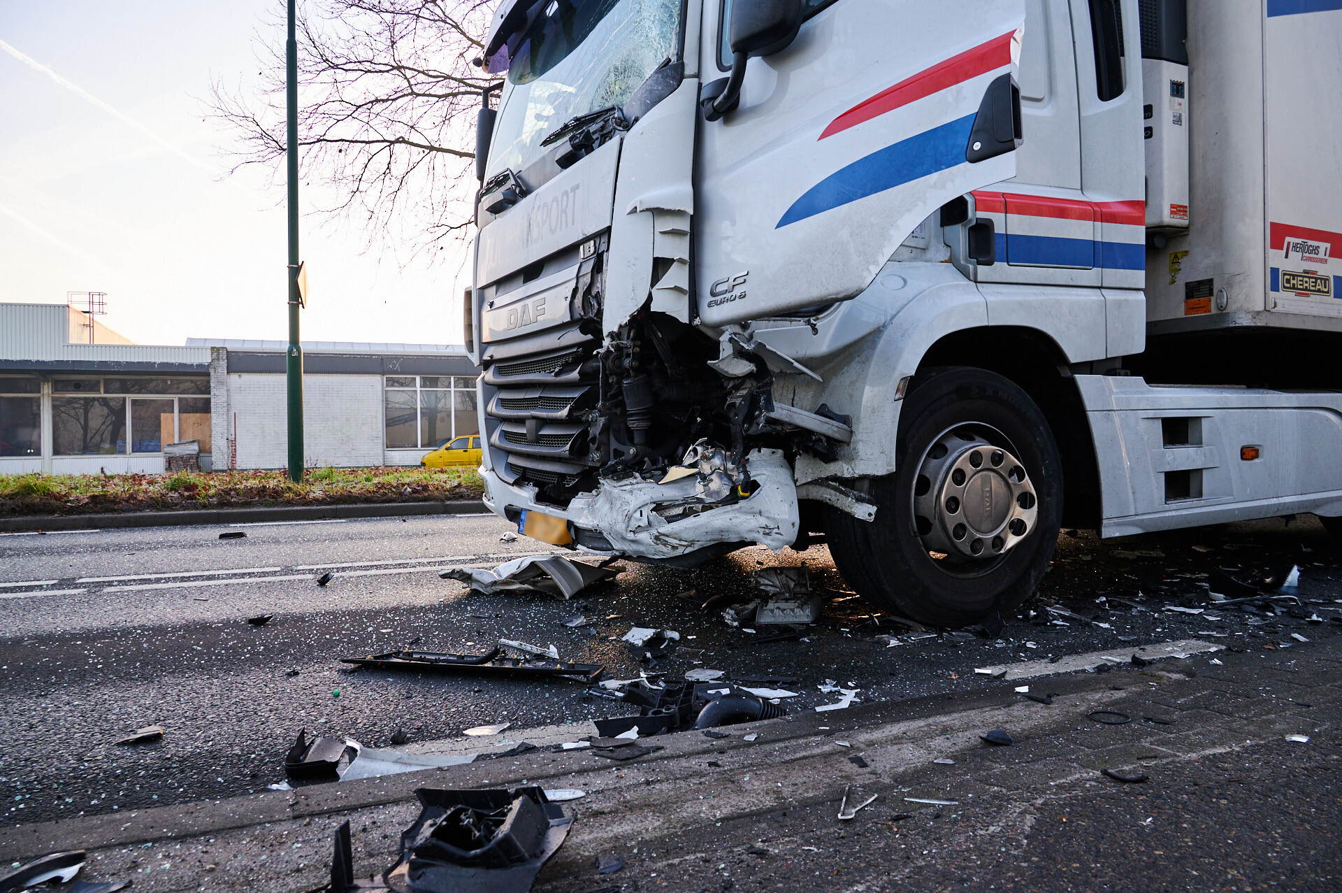Bestelbus en vrachtwagen botsen: zeker één persoon gewond