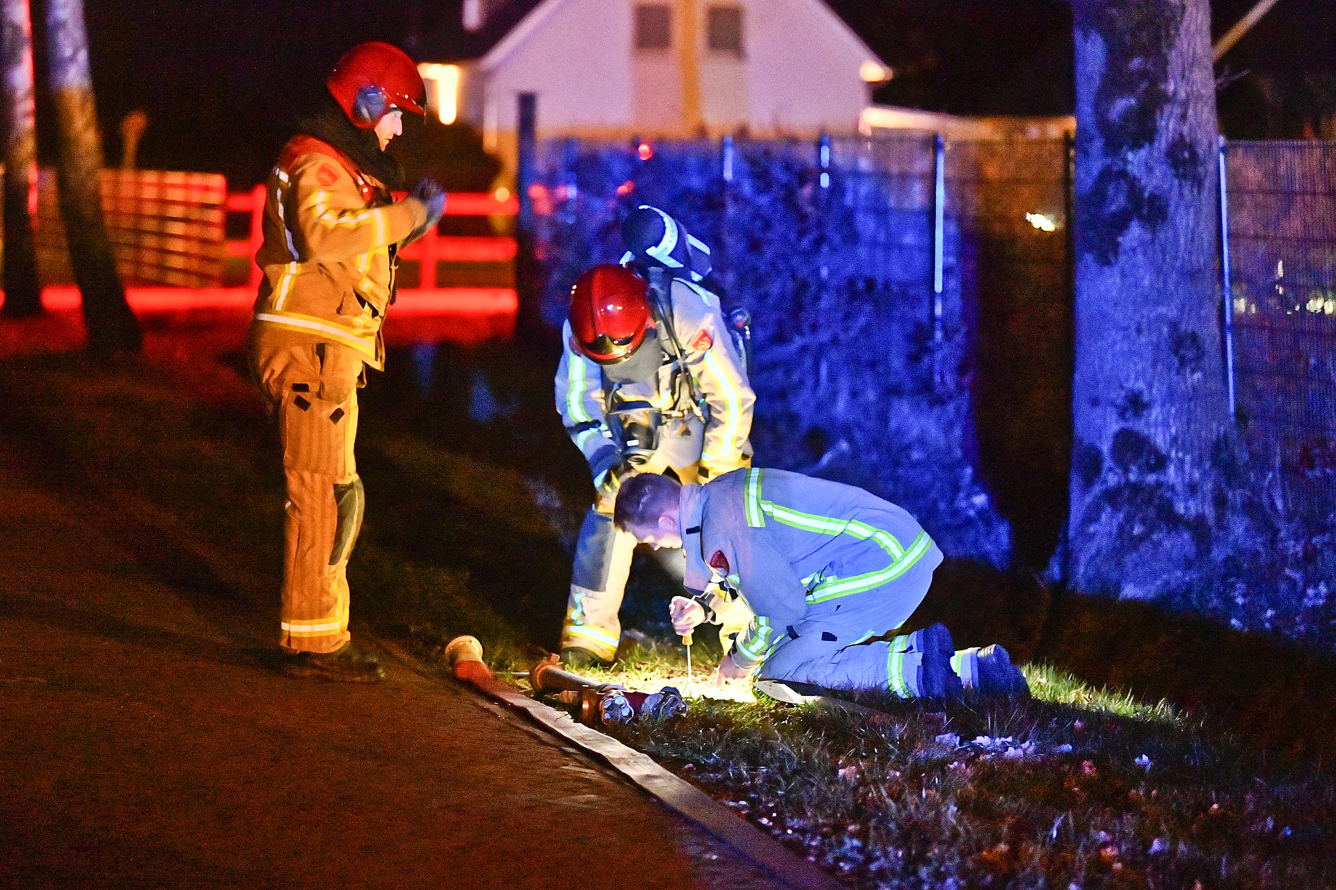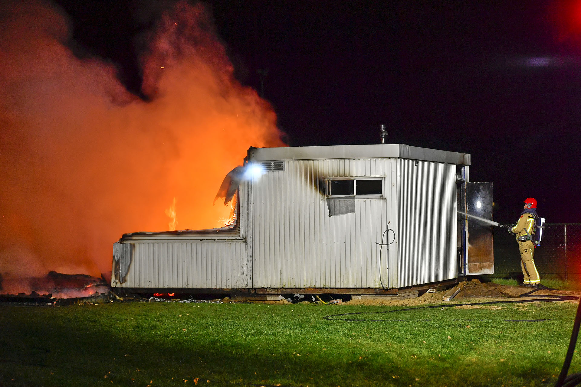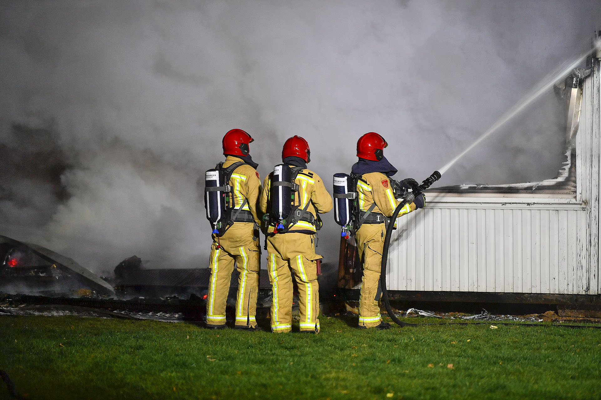 De bewoonster van het naastgelegen pand hoorde geluiden en ging polshoogte nemen. Ze constateerde dat de chalets in brand stonden. De brandweer had moeite met de waterwinning. Eén van de brandputten wilde niet open omdat het oog afgebroken was. Een schroevendraaier om de deksel op te lichten bood uitkomst.