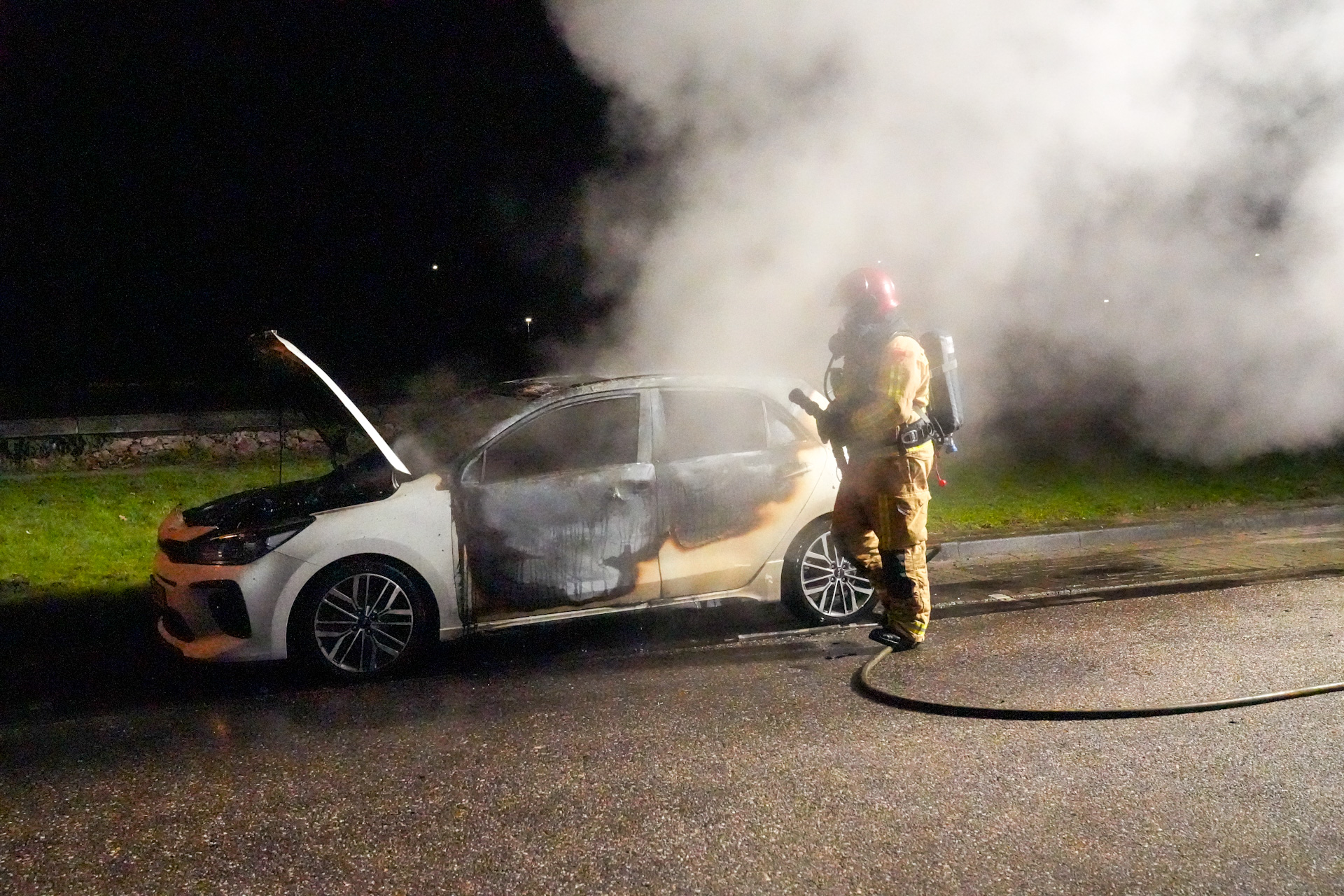 Geparkeerde auto door brand verwoest