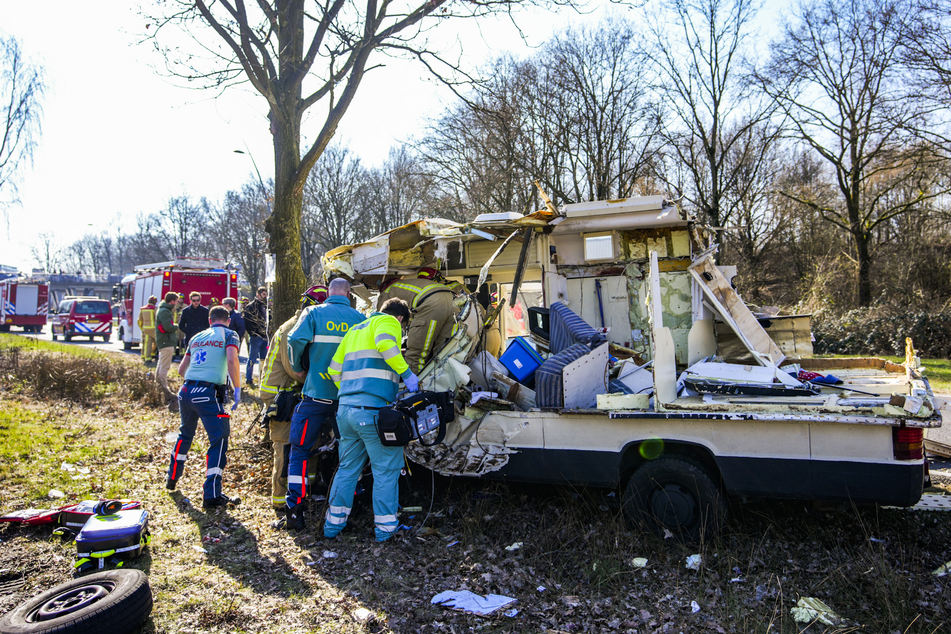 De hulpdiensten waaronder een traumahelikopter, en twee ambulances en meerdere brandweervoertuigen zijn rond 12:20 uur opgeroepen voor het incident. De camper raakte met daarin een man van de weg en knalde tegen twee bomen. De man heeft bekneld gezeten in de opengescheurde camper. De brandweer heeft de man weten te bevrijden en is met spoed overgebracht naar het ziekenhuis.