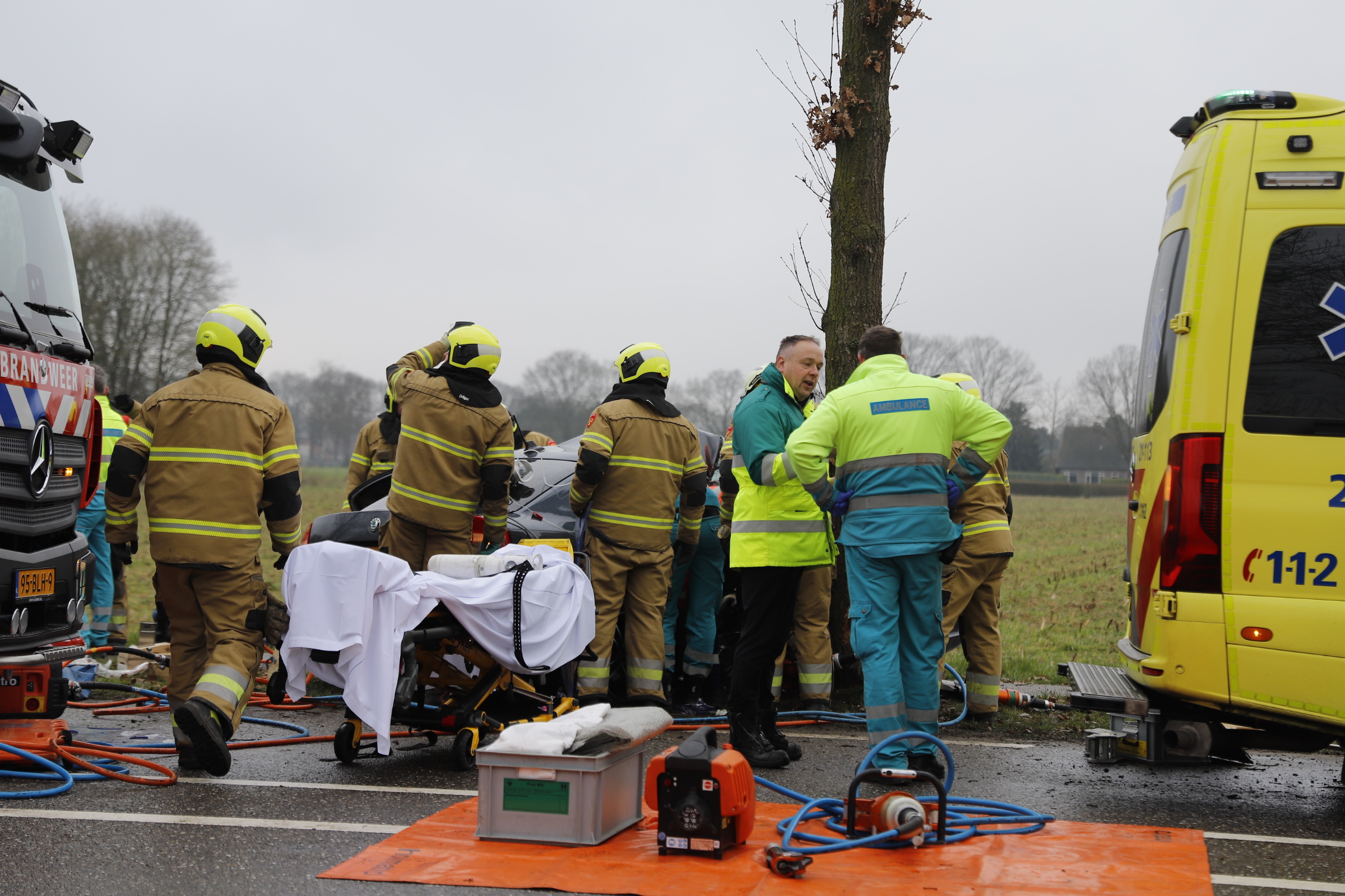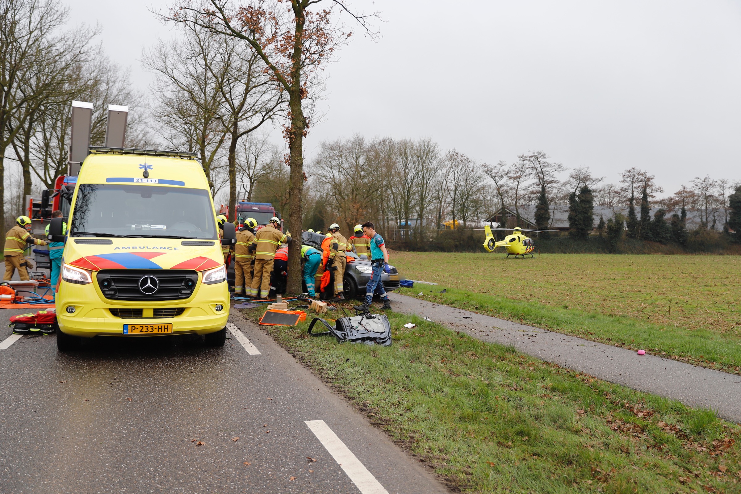 De bestuurder, een 44-jarige man uit Haps, crashte door nog onbekende oorzaak tegen een boom. Bij de man in de auto zaten ook drie kinderen van 12, 14 en 16 jaar oud. Verschillende hulpdiensten werden opgeroepen, waaronder een traumahelikopter. Ook de brandweer kwam om een gewonde die bekneld was geraakt te bevrijden. Alle slachtoffers, zijn volgens de woordvoerster naar het ziekenhuis gebracht.