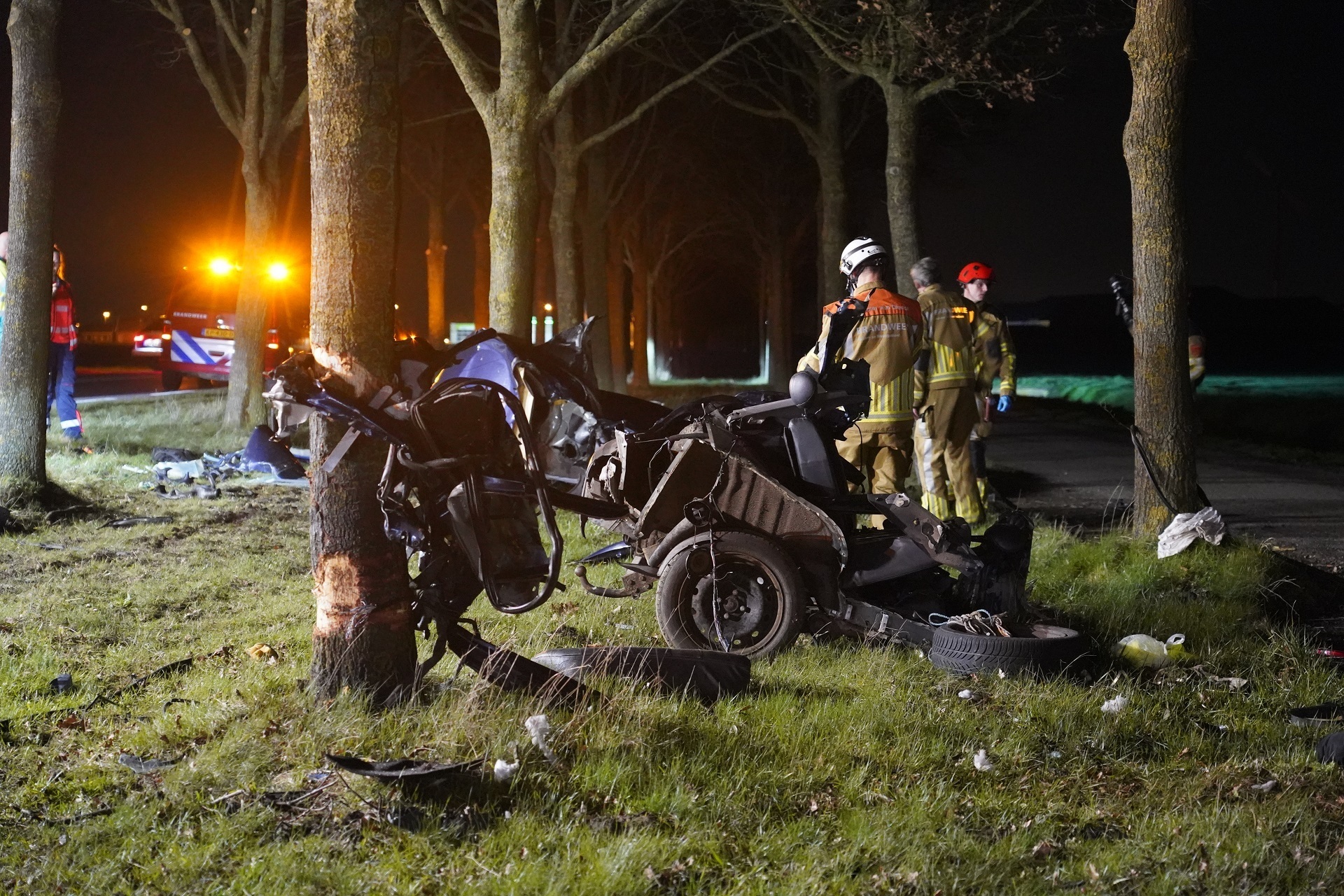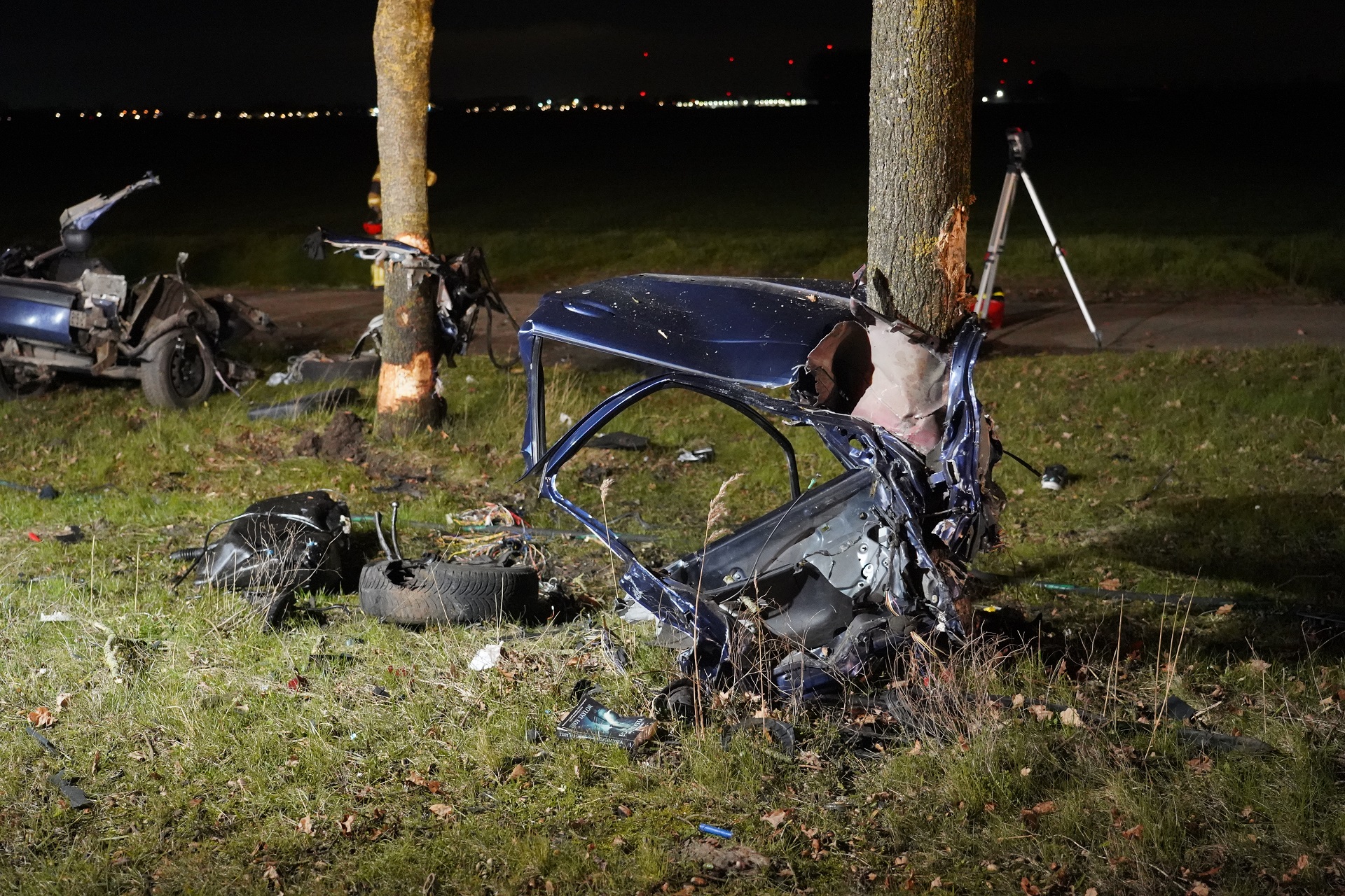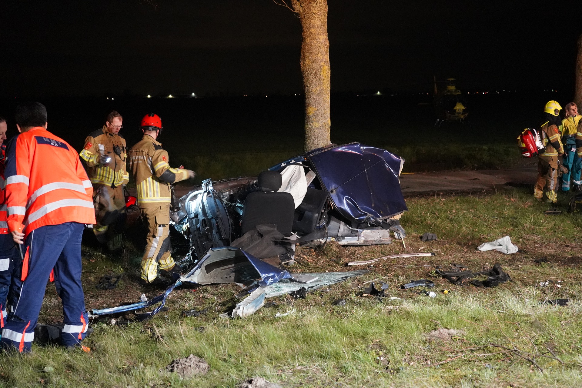 Auto breekt in stukken na crash tegen boom, bestuurder (41) overleden
