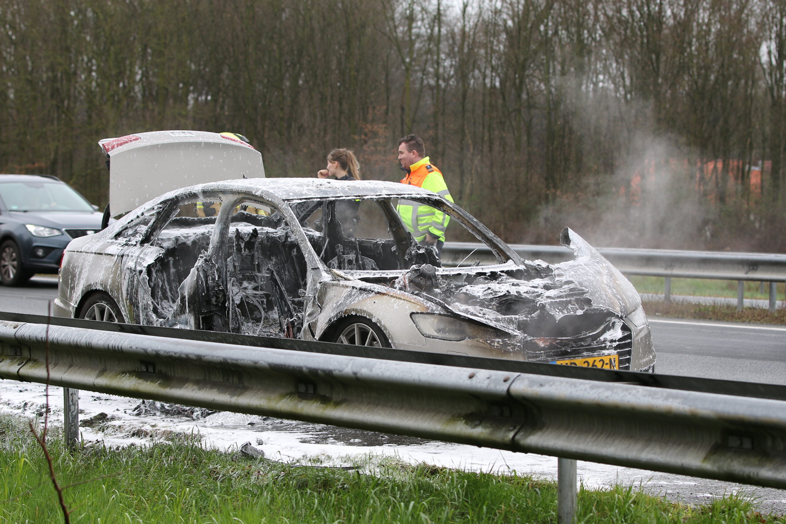Een berger heeft het voertuig geborgen. Hoe dat de brand heeft kunnen ontstaan is niet bekend