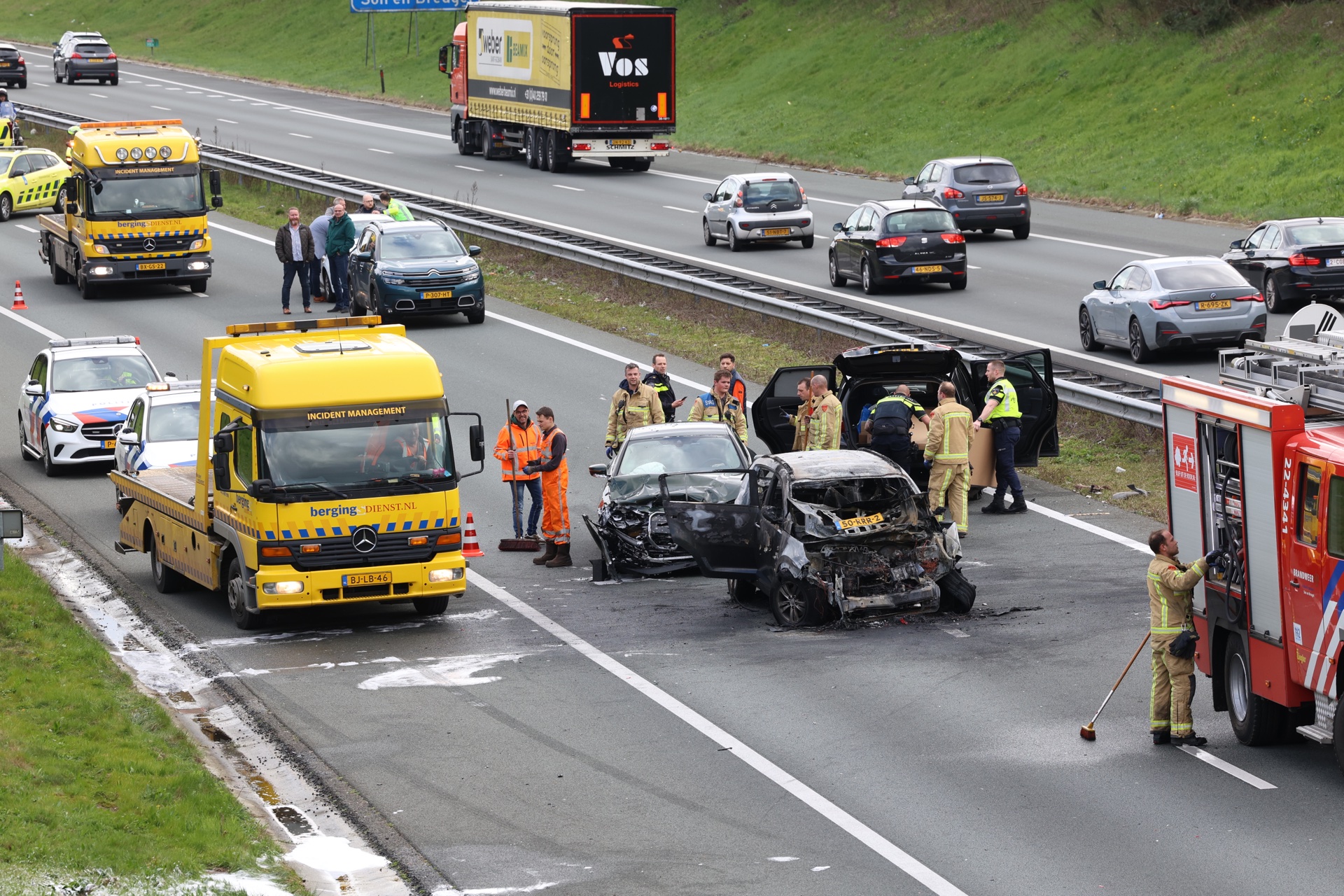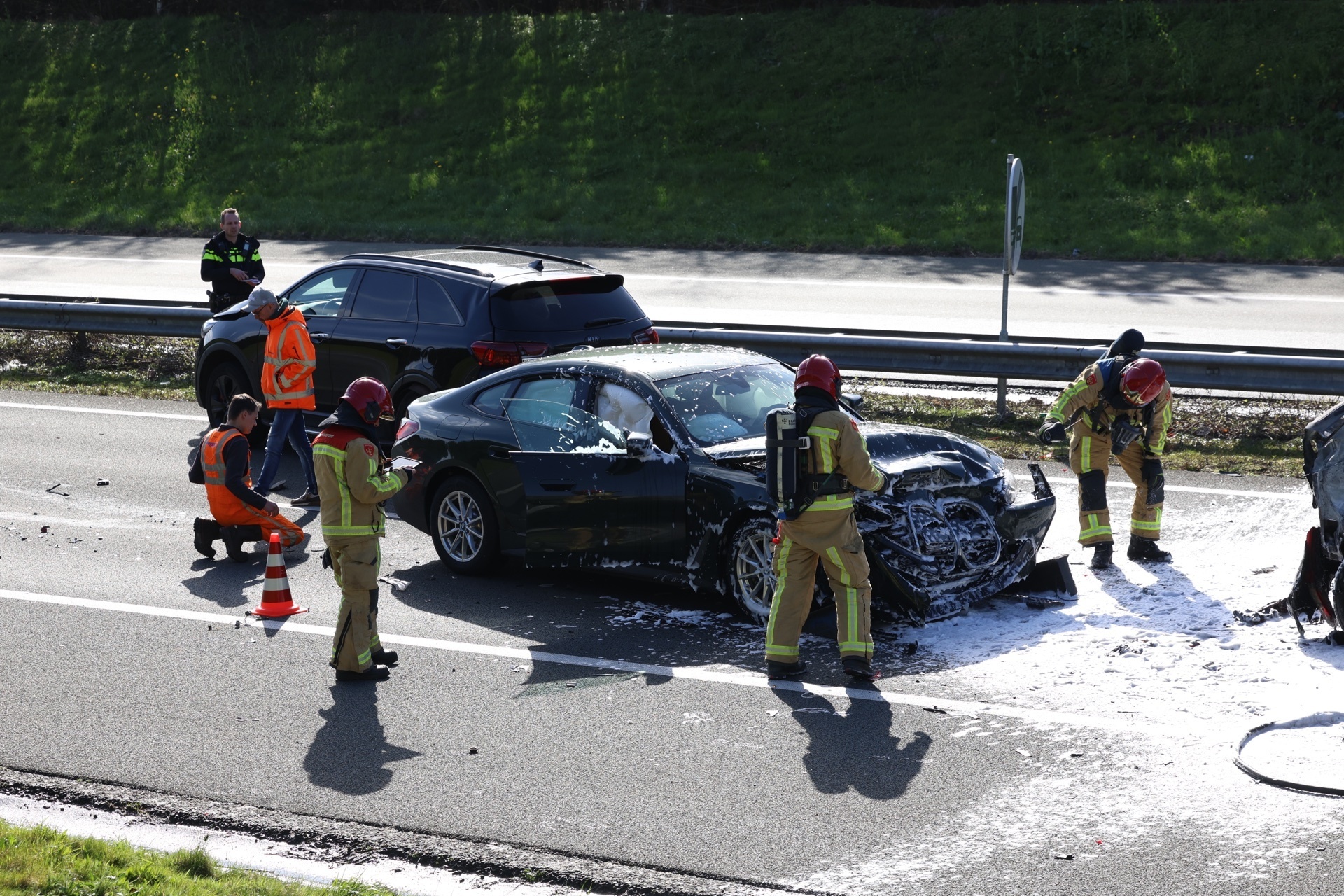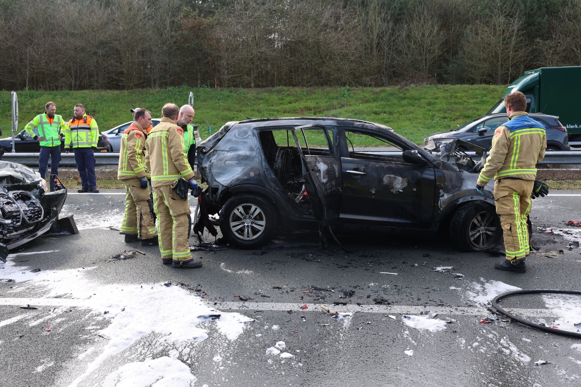Auto vliegt in brand na ongeval met meerdere auto’s