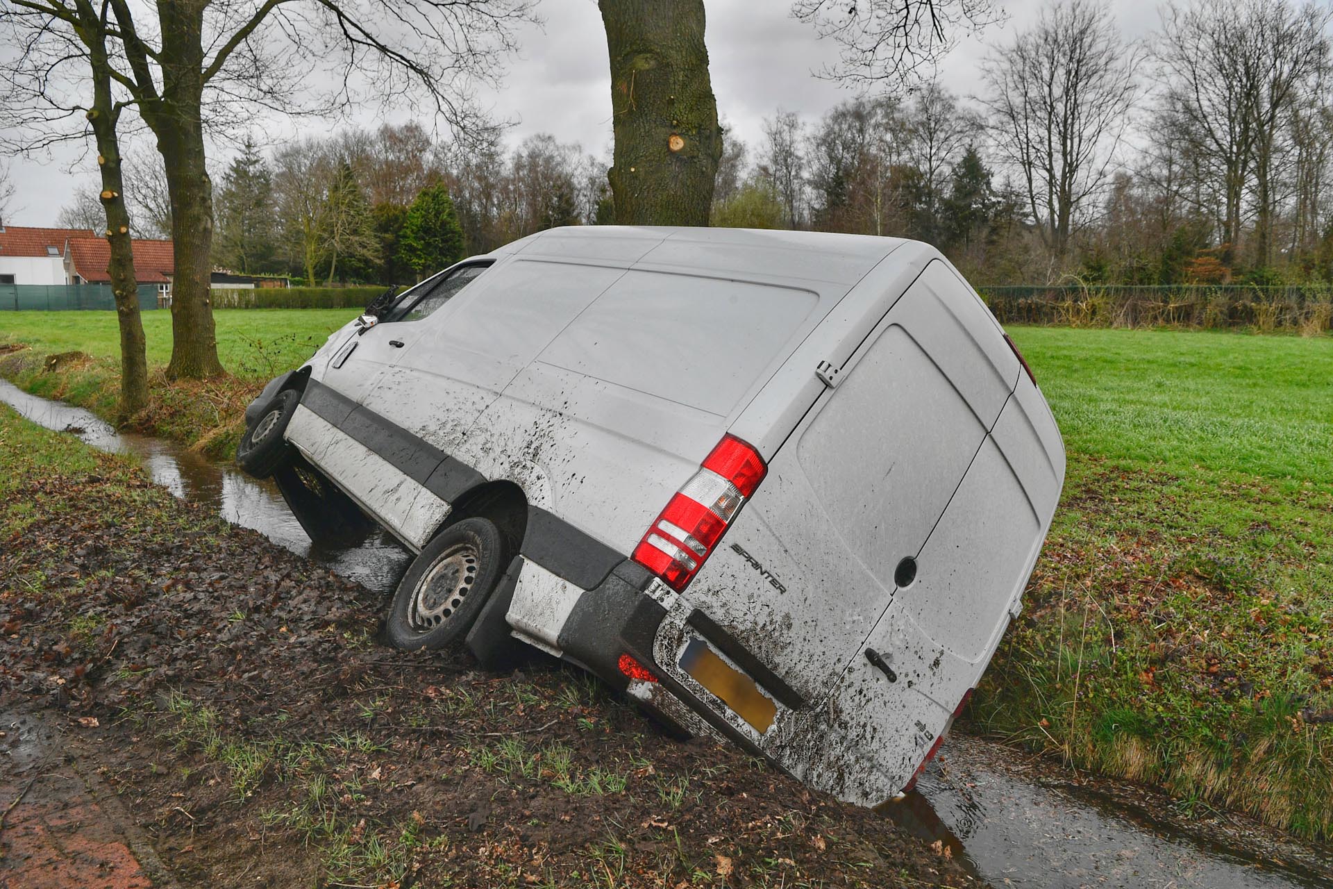 Een automobilist kwam vanuit de Sil de Maastrichterweg opgereden en zag hierbij de bestelbus over het hoofd. De auto raakte de bus en belandde daarna in de sloot.