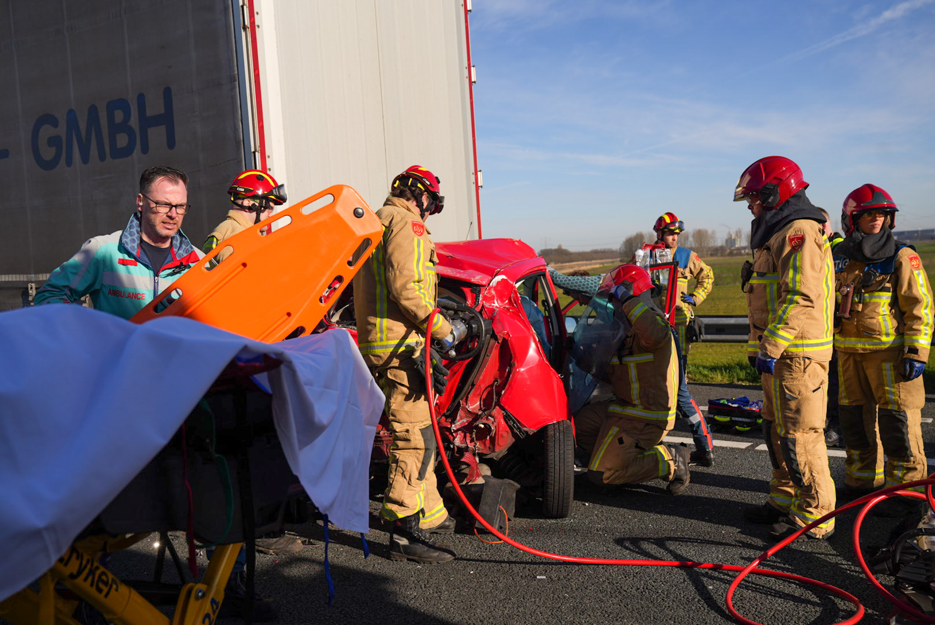 Het ongeluk gebeurde rond kwart voor negen. De automobilist zat bekneld en moest door de hulpdiensten worden bevrijd. De brandweer heeft een deel van de auto opengeknipt om het slachtoffer te kunnen bevrijden. Het slachtoffer was aanspreekbaar en werd met spoed naar het ziekenhuis gebracht.
