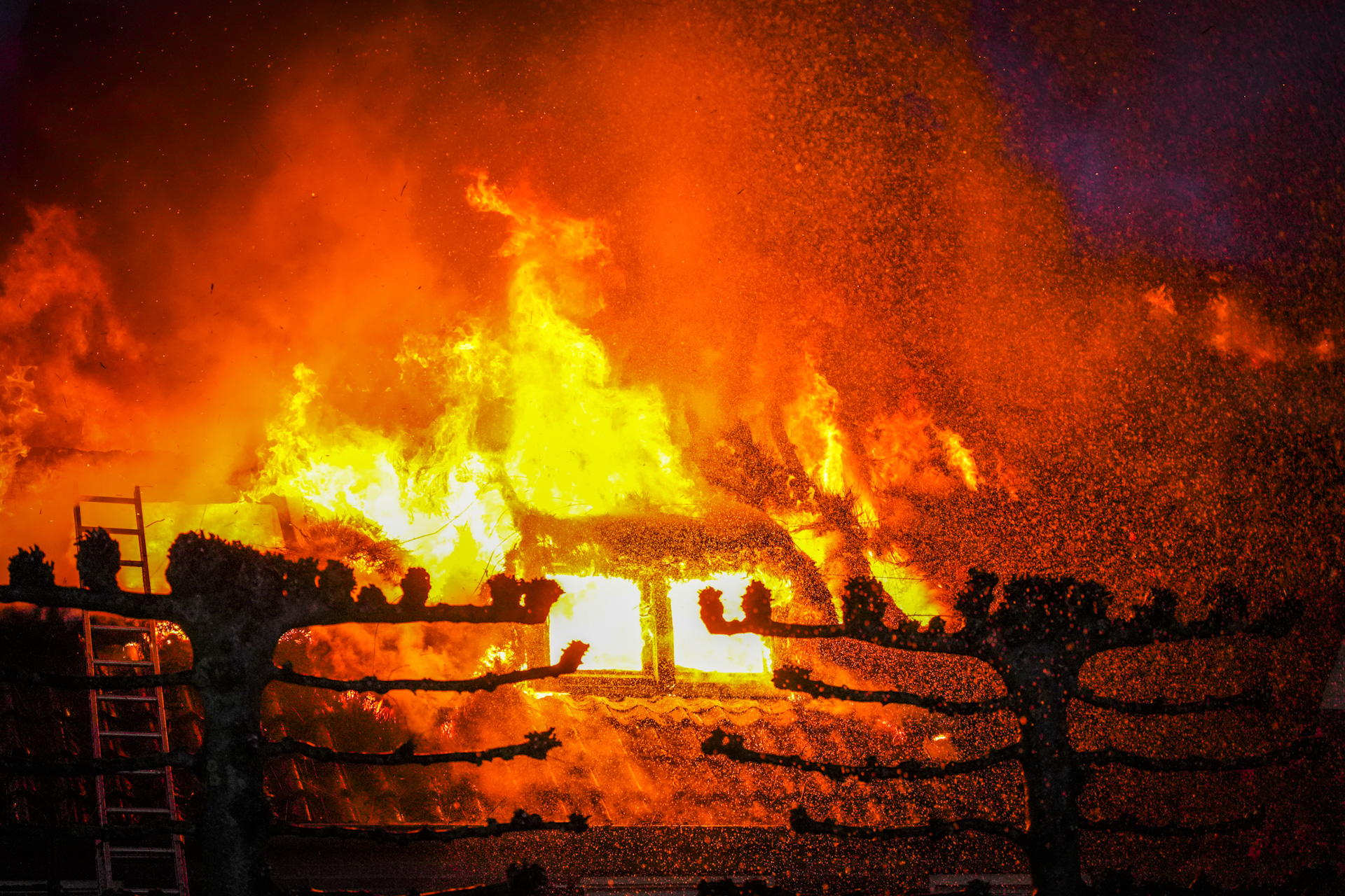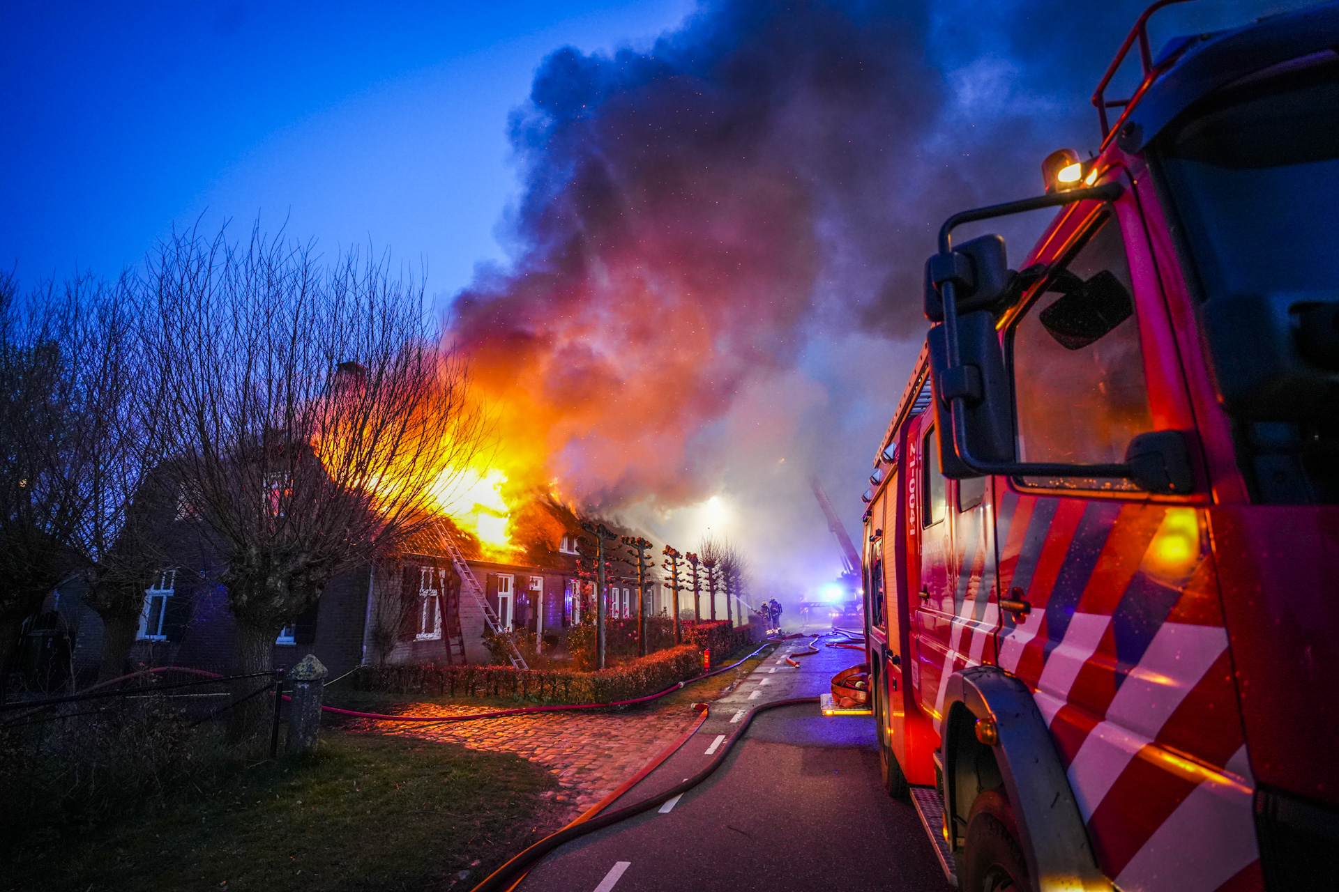 In eerste instantie werd er gesproken over een schoorsteenbrand, maar al snel bleek dat een groot deel van de rietenkap in brand stond. Dit maakt het bestrijden van de brand extra lastig. Een hond die nog binnen was toen de brand uitbrak, werd op tijd gered, laat de brandweer weten.