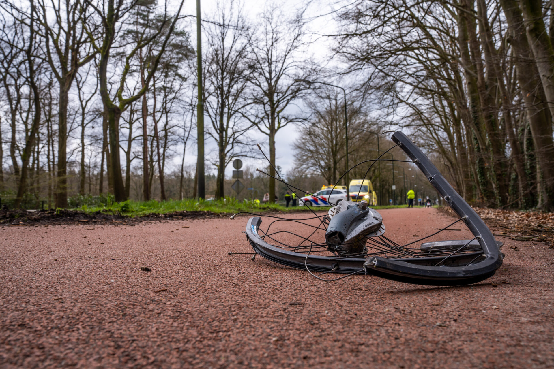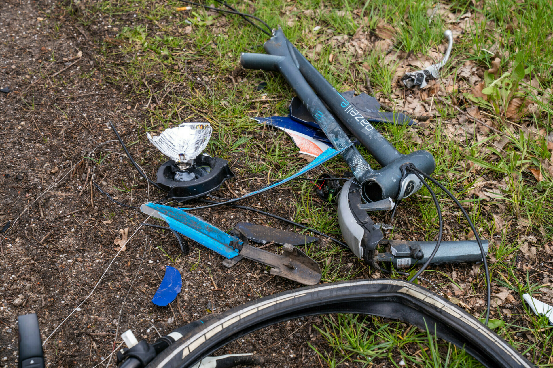Delen van de fiets kwamen tientallen meters verderop terecht op de oprit van een huis.