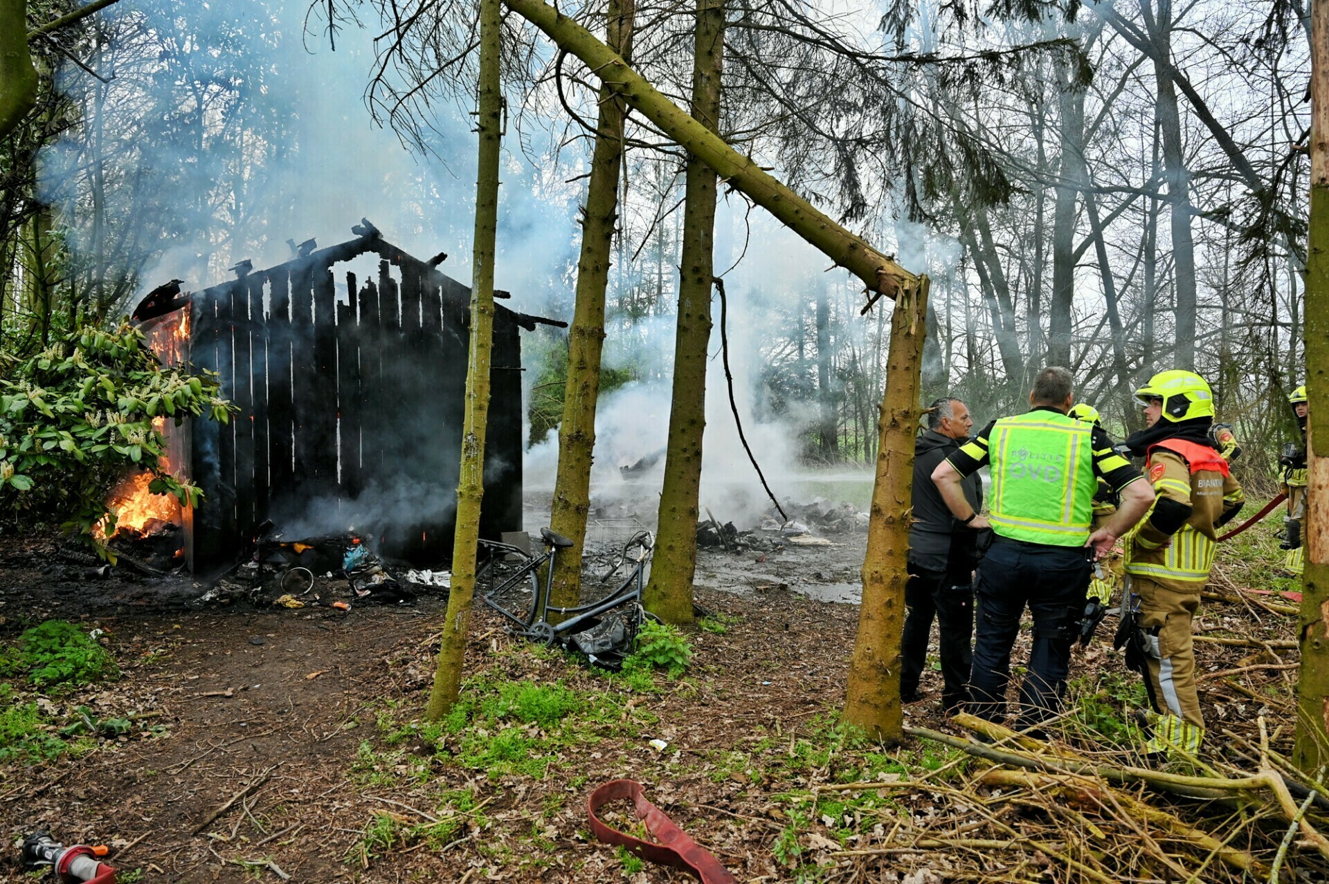 De brandweer en politie kwamen met meerdere wagens ter plaatse. De brandweer kon de boshut niet meer redden. Het blussen nam enige tijd in beslag.