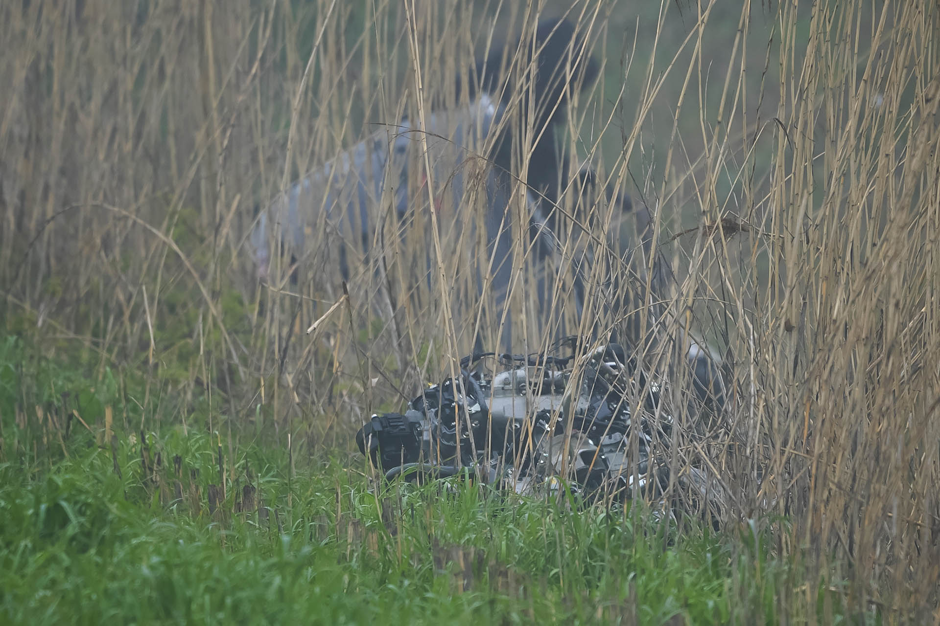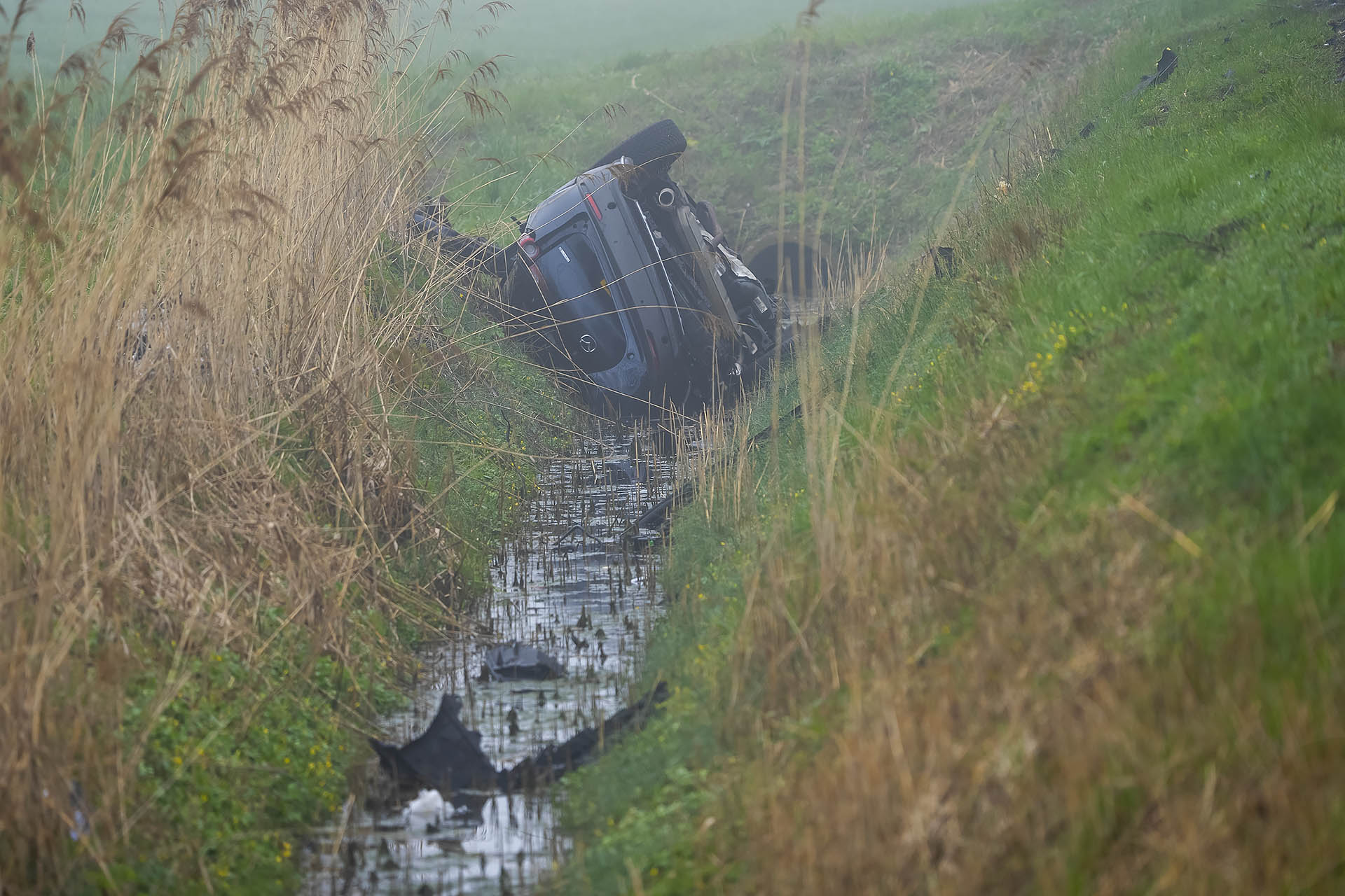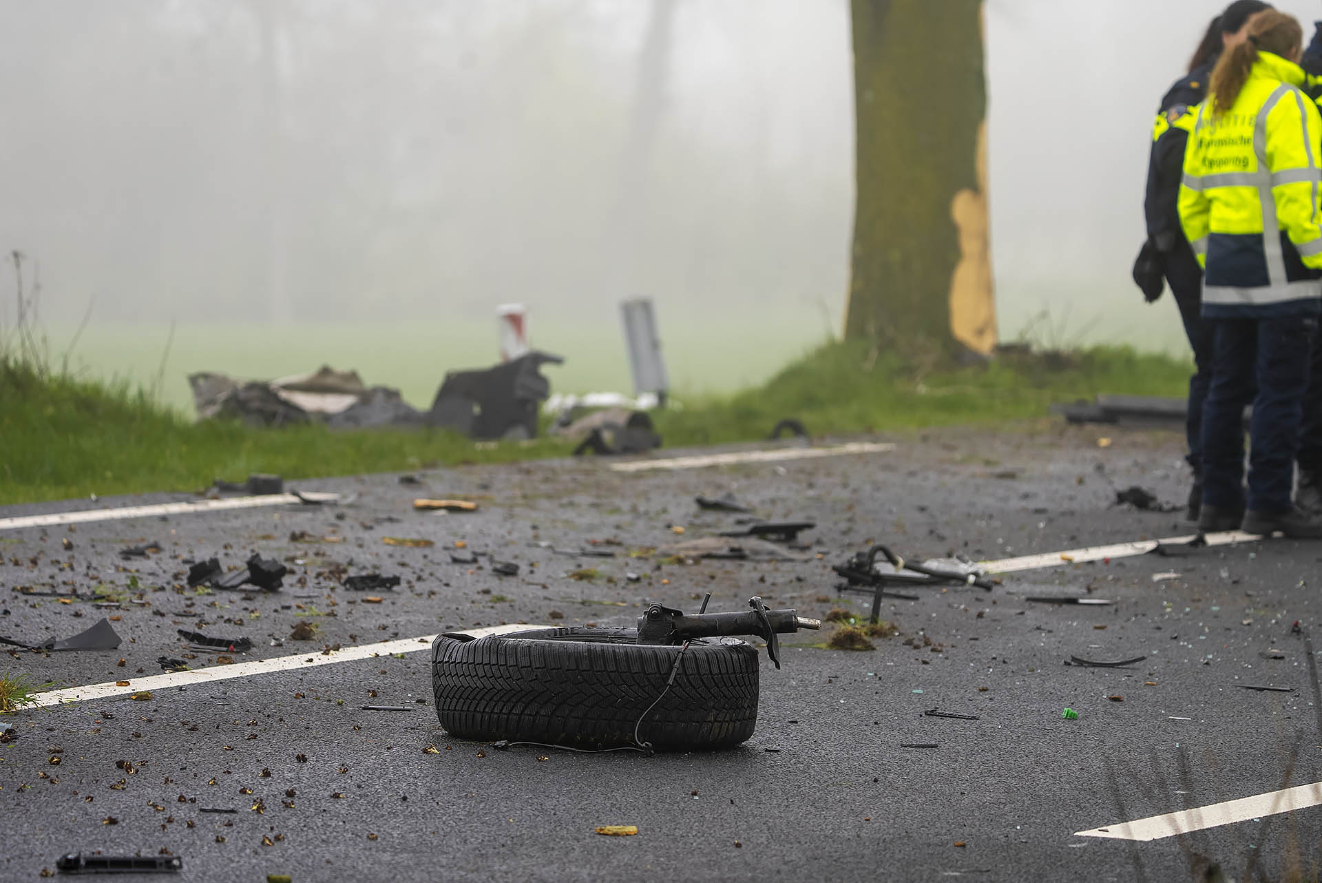 Het ongeluk gebeurde rond 9.45 uur. Na de botsing kwam de auto in de sloot terecht. Auto-onderdelen lagen over zo’n 200 meter verspreid over de weg, een bumper tientallen meters verderop in een weiland en het motorblok dat uit de auto vloog kwam aan de andere kant van de sloot terecht.