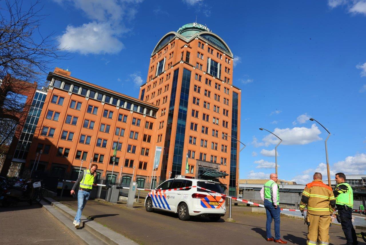 Tegen 16:15 uur werden diverse hulpdiensten waaronder het hoogte reddingsteam van de brandweer opgeroepen. Toen de brandweer en politie eenmaal aanwezig waren, wisten de glazenwassers het bakje zelf los te krijgen en naar de andere zijde van het gebouw te draaien.