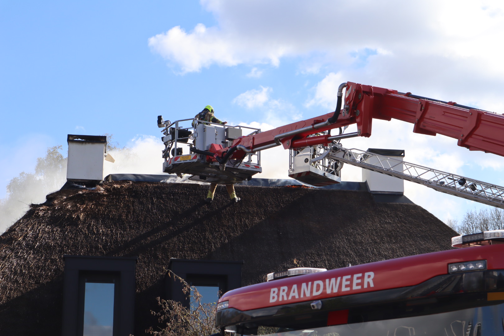 Bij de brand is redelijk wat rook vrijgekomen en het rieten dak heeft flinke schade opgelopen. De oorzaak van de brand is nog niet bekend.