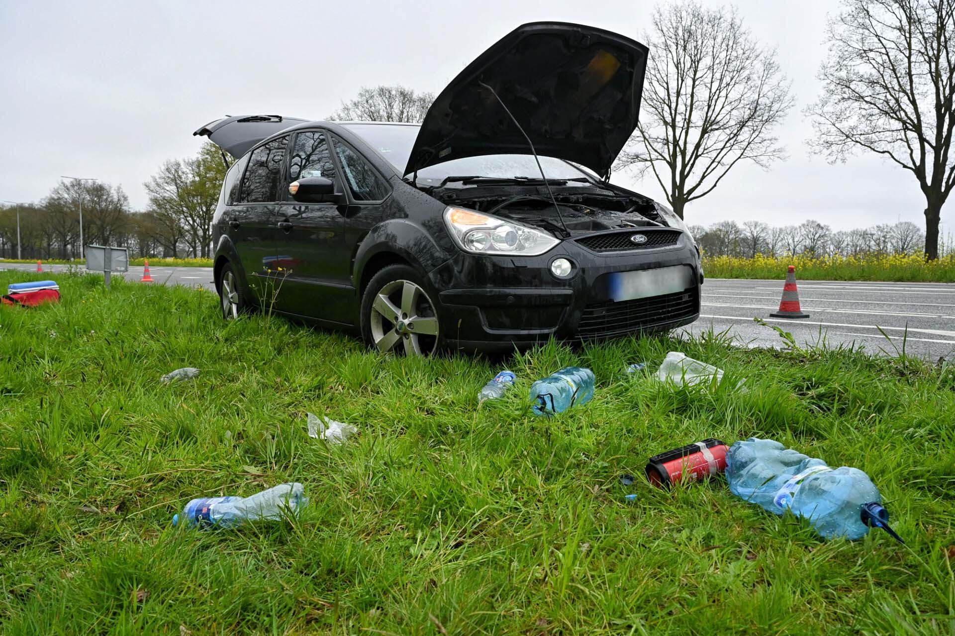 Auto vliegt in brand tijdens het rijden, inzittenden proberen te blussen met drinkwater