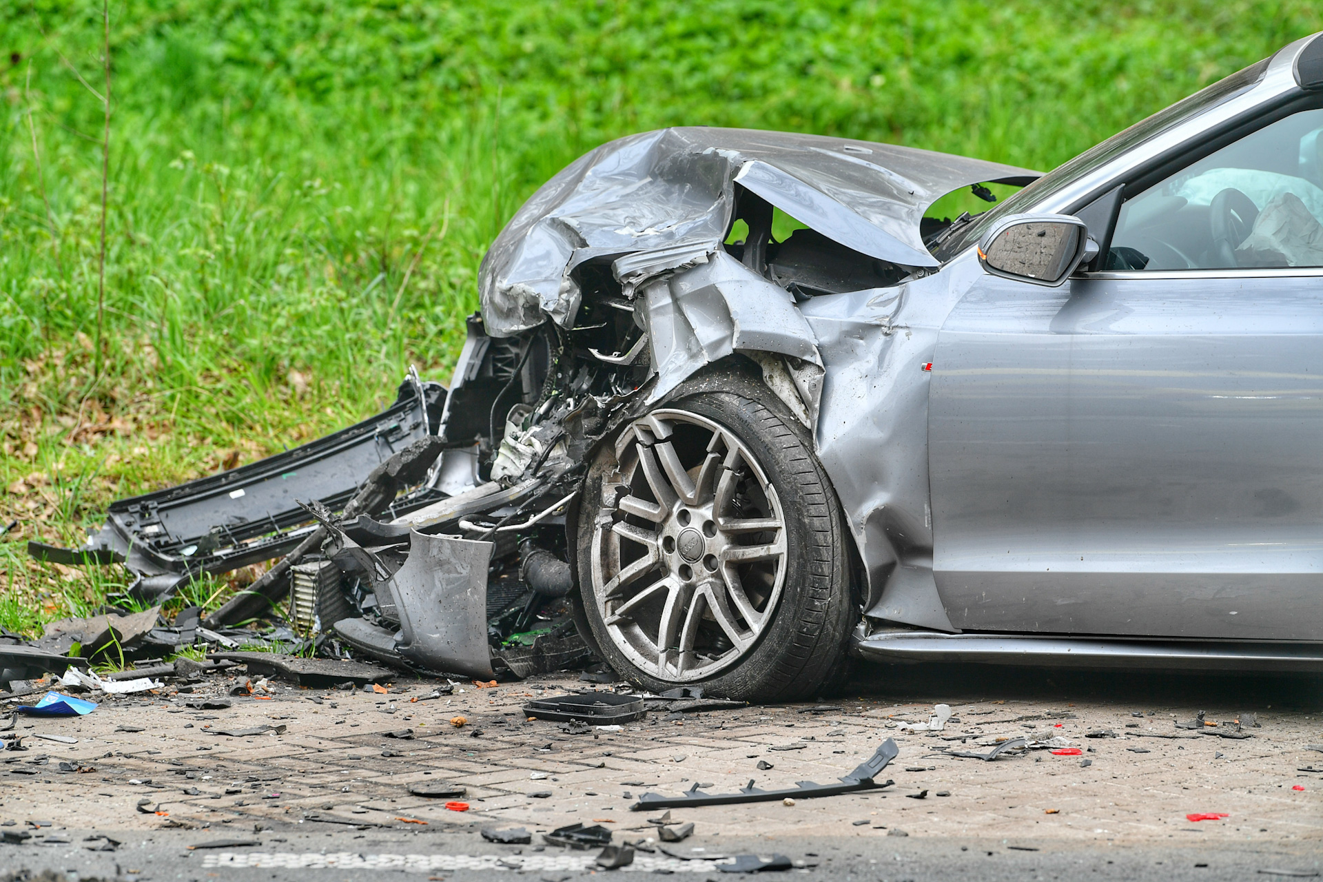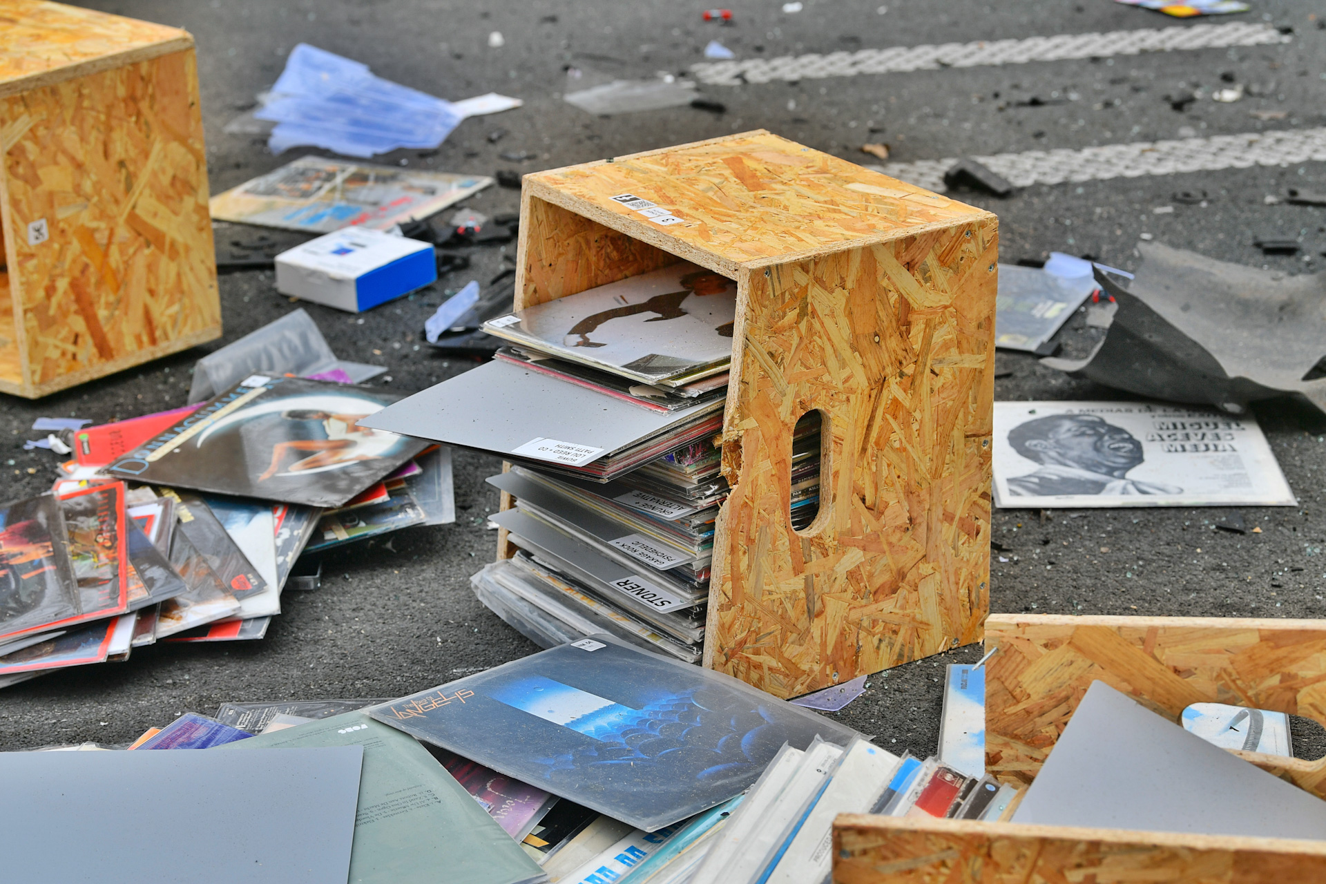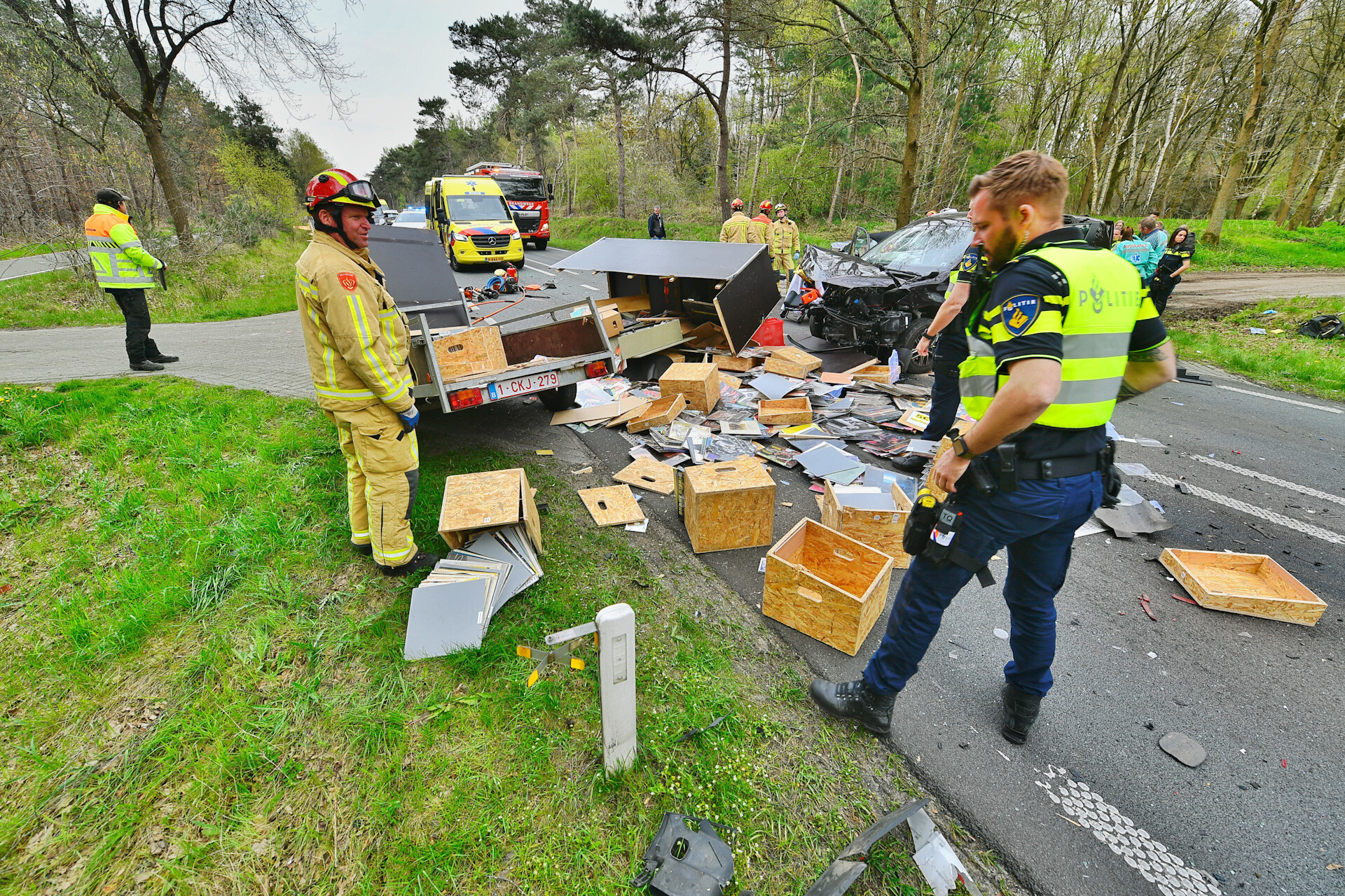 Als gevolg hiervan liggen er brokstukken en vinylplaten op de weg. Een persoon is met een ambulance vervoerd naar het ziekenhuis.