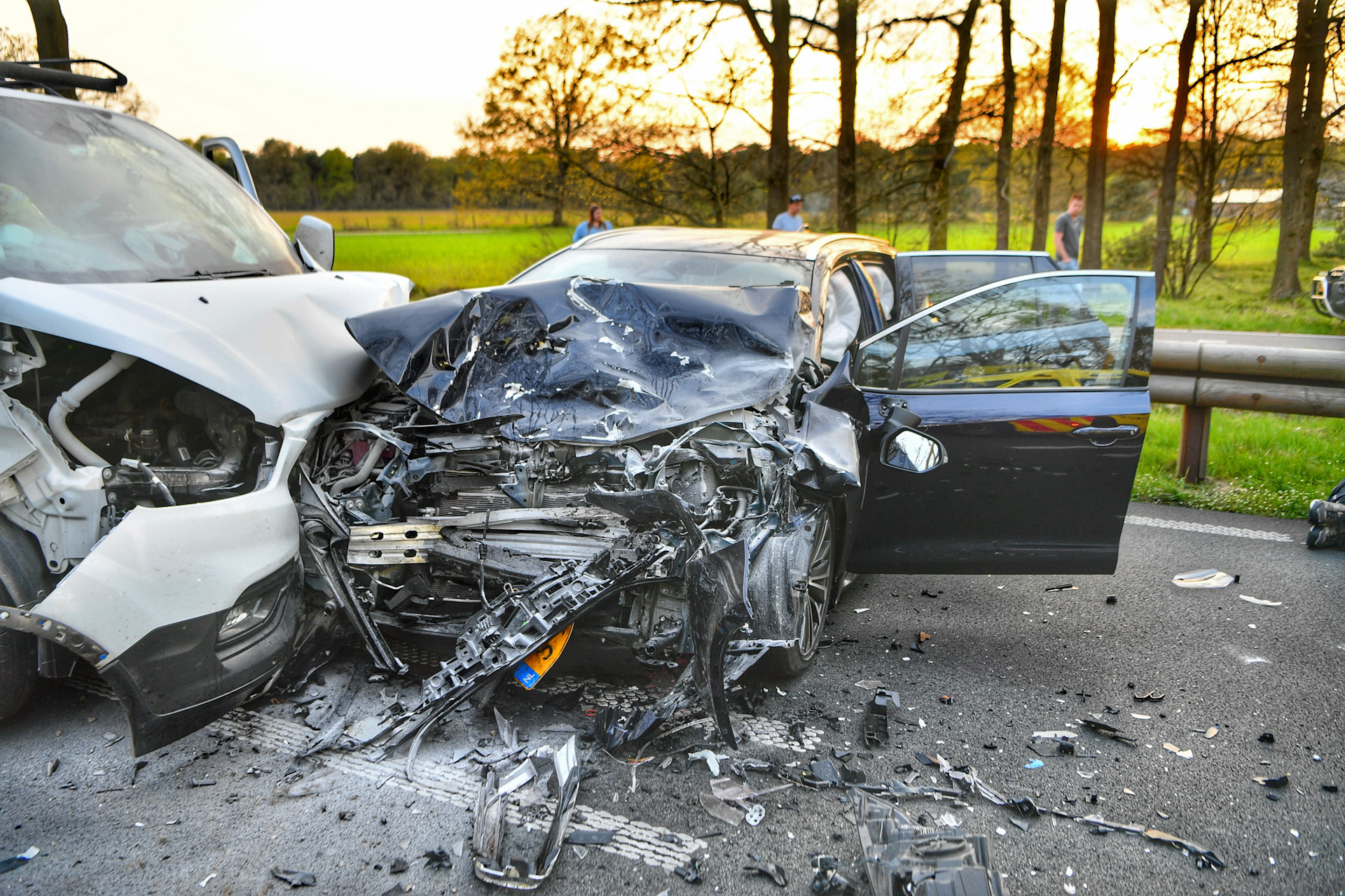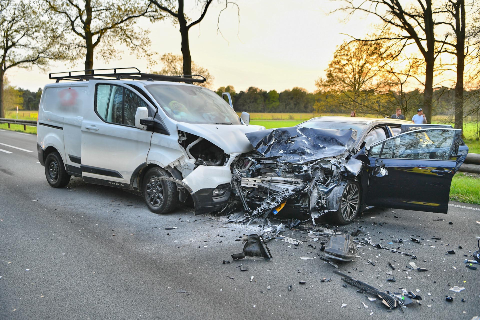 Rond 20:15 uur kwam de melding van de aanrijding binnen bij de meldkamer. Ter plekke kwam een busje op de verkeerde weghelft terecht en botste frontaal op een tegemoetkomende auto. De bestuurder van de personenauto raakte gewond en is per ambulance overgebracht naar het ziekenhuis.