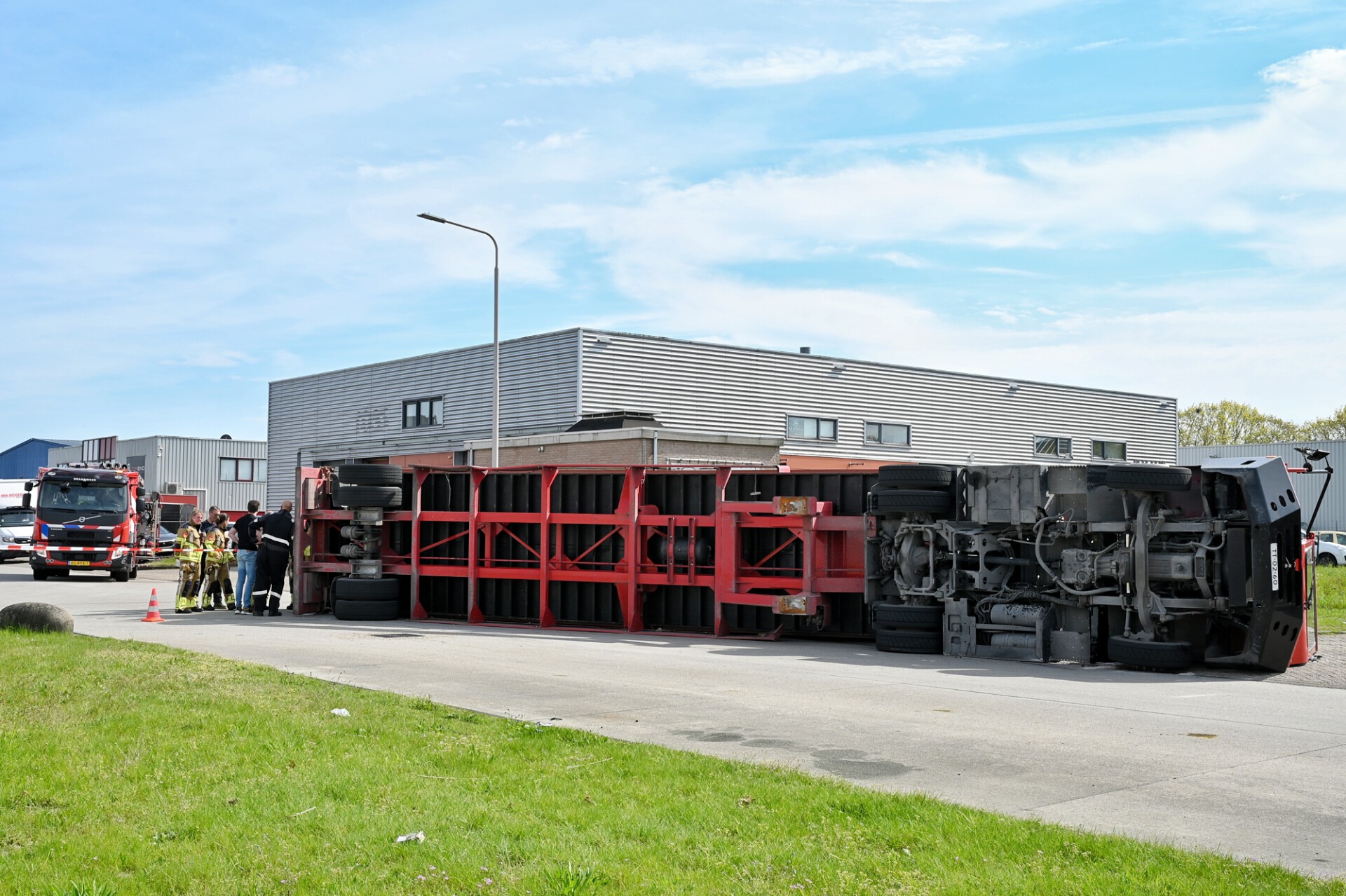 Volgens Omroep Brabant kantelde de vrachtwagen toen de chauffeur wegreed bij een bedrijf en de weg op wilde draaien. De chauffeur kon zelf uit de cabine kruipen en kwam er zonder kleerscheuren vanaf. Wat de vrachtwagen vervoerde, is niet bekend.