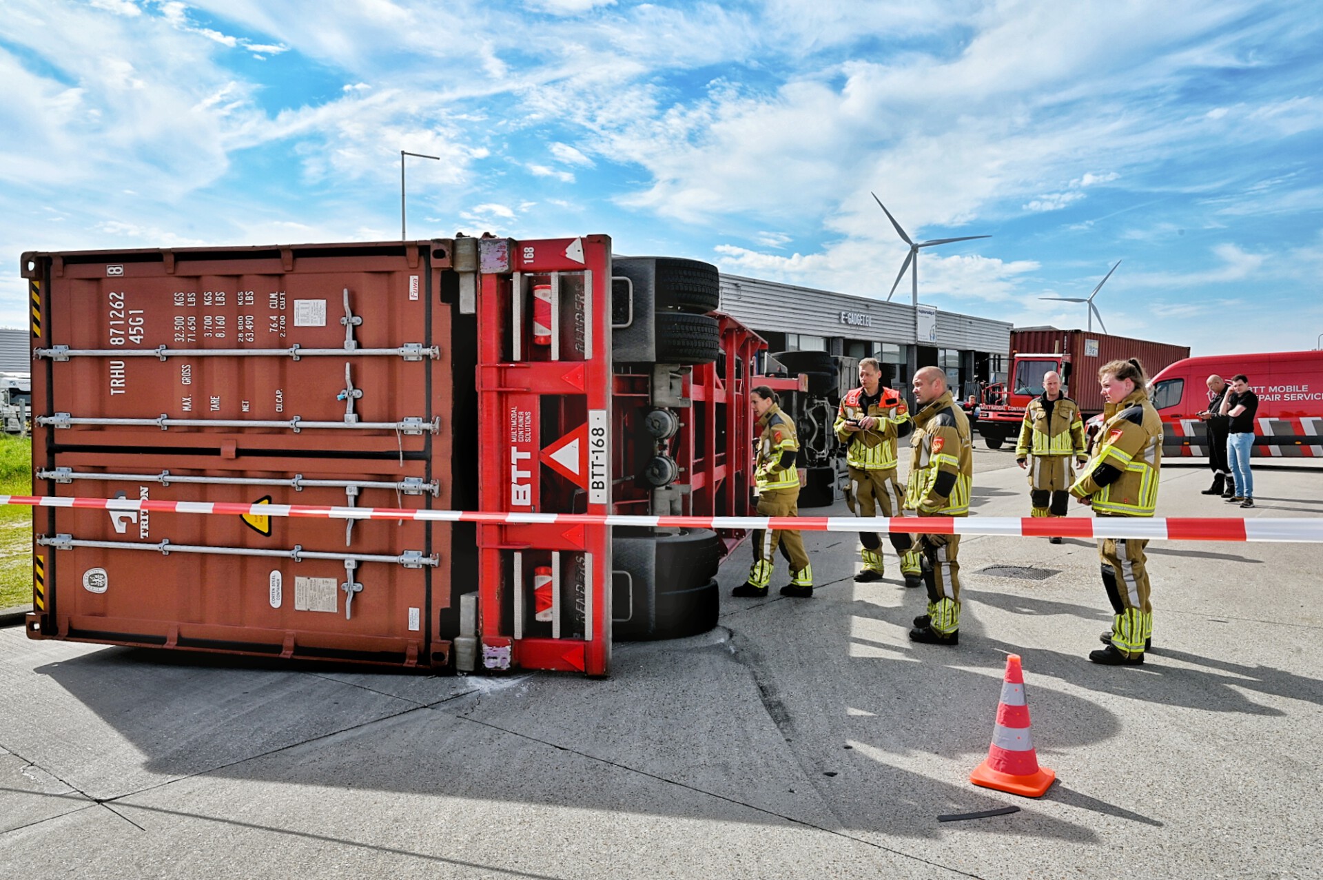 Volgens Omroep Brabant kantelde de vrachtwagen toen de chauffeur wegreed bij een bedrijf en de weg op wilde draaien. De chauffeur kon zelf uit de cabine kruipen en kwam er zonder kleerscheuren vanaf. Wat de vrachtwagen vervoerde, is niet bekend.