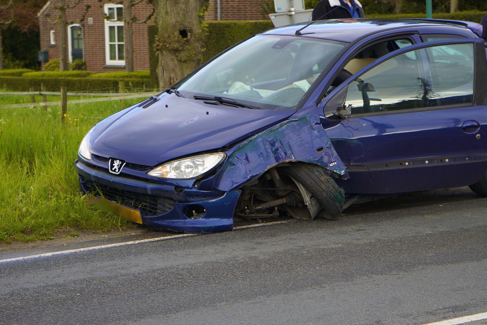 De bestuurder van de auto heeft de stoeprand van een wegversmalling geraakt en daarbij ook een lantaarnpaal geraakt. Vervolgens is de auto via de berm tot stilstand gekomen. De auto liep door het ongeval flinke schade op, maar de bestuurder en bijrijdster raakten niet gewond. Een bergingsbedrijf kwam ter plaatse om het voertuig af te slepen.