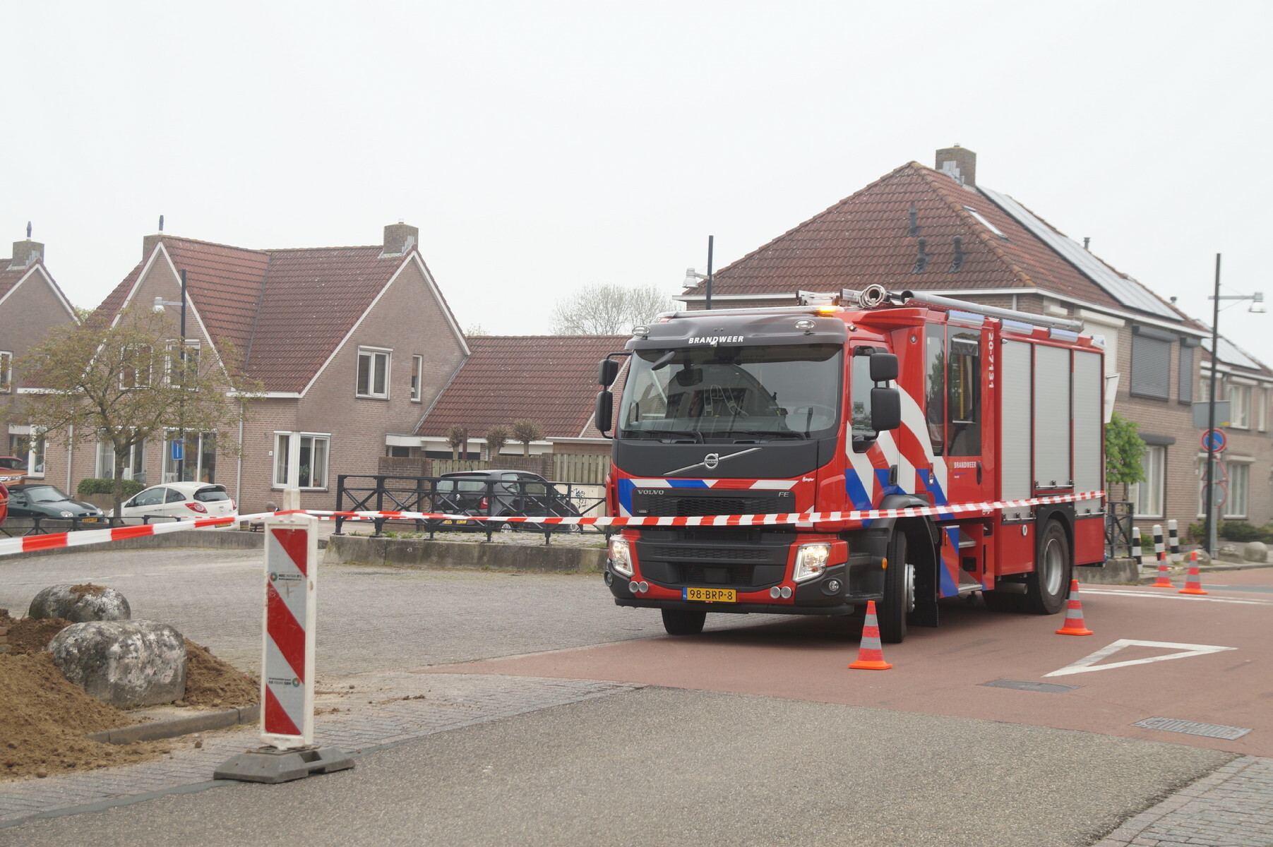 De brandweer heeft de straat afgesloten en netbeheerder Enexis is ter plaatse om het lek te dichten.
