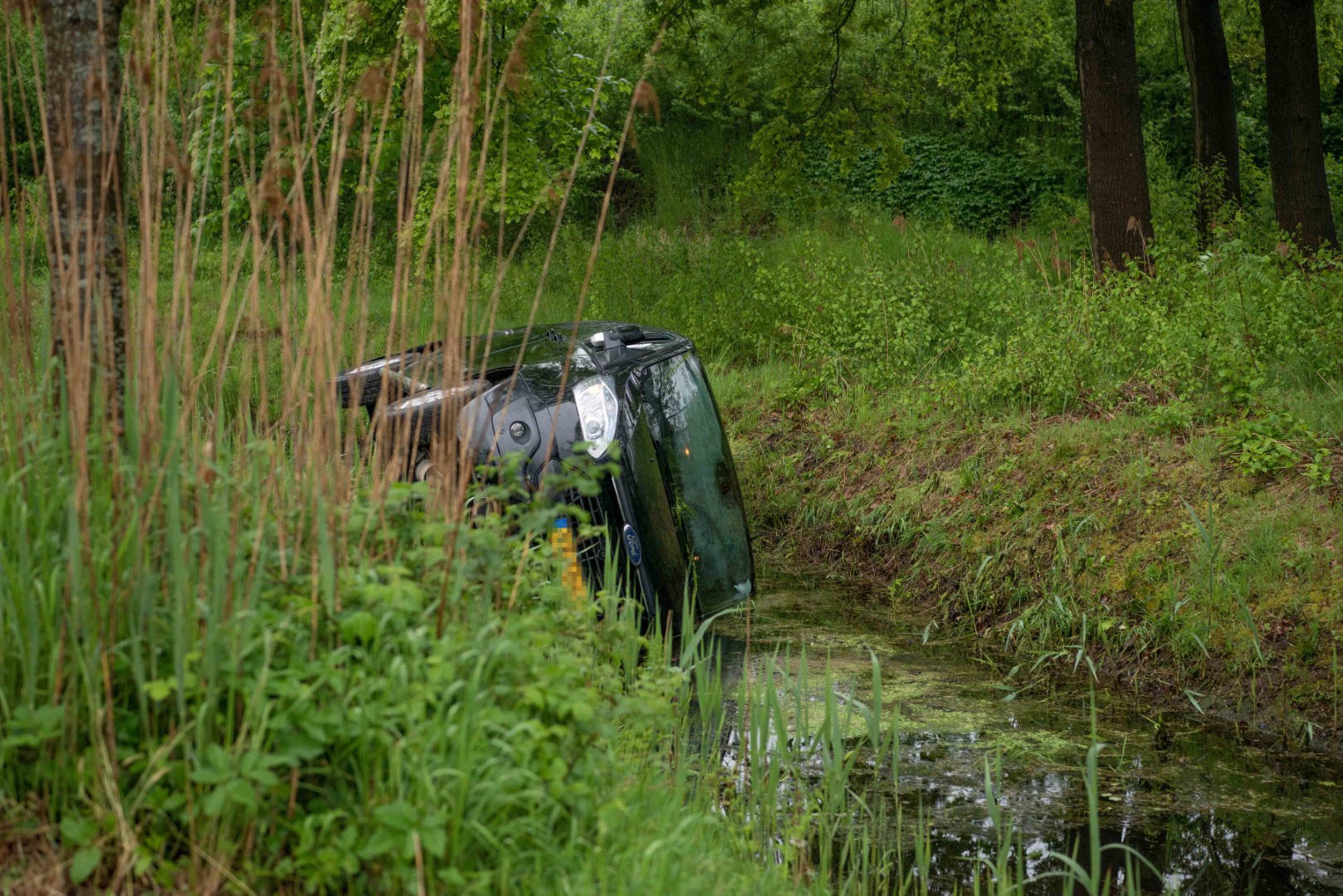 Een bergingsbedrijf zal het bestelbusje uit de sloot takelen en afvoeren.
