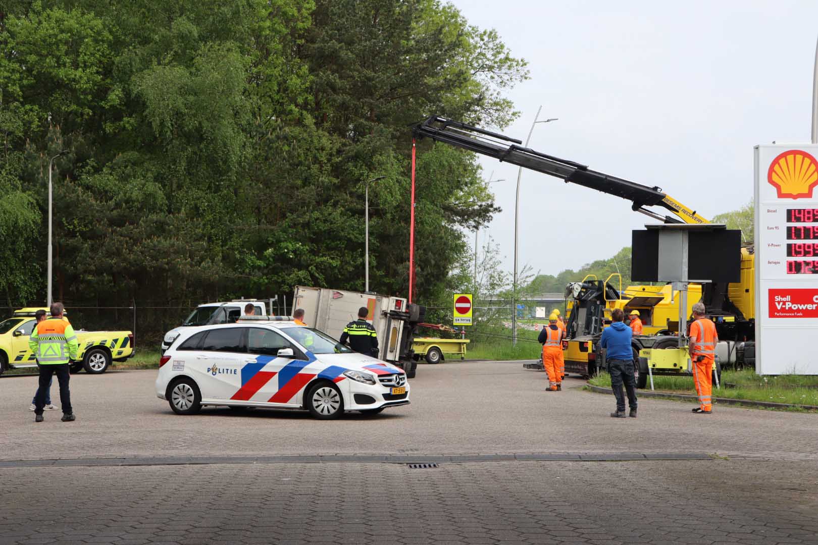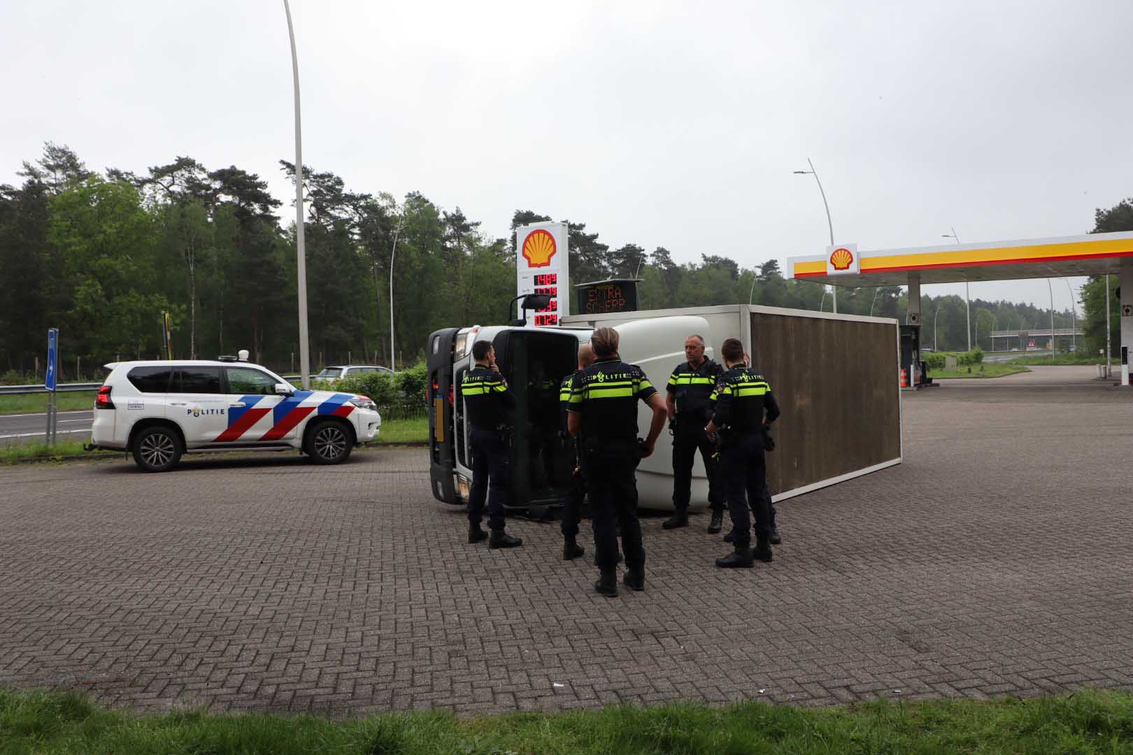 Rond 11:00 uur kwam de melding van het ongeluk binnen bij de meldkamer, waarna de hulpdiensten werden gealarmeerd. Ter plekke reed de bestuurder van het vrachtwagentje op de afrit bij een tankstation, verloor de macht over het stuur en belandde op de zijkant. Een bergingswagen werd ingeschakeld om het vrachtwagentje weer rechtop te zetten.