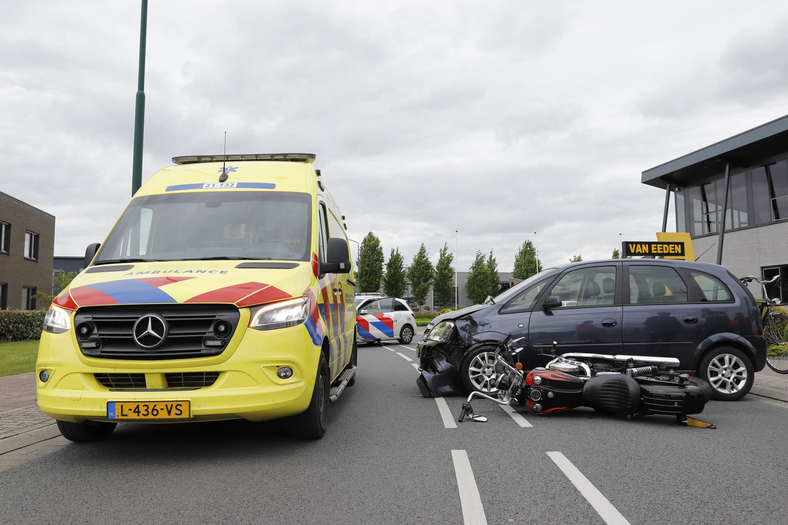 De motorrijder werd met onbekend letsel per ambulance overgebracht naar het ziekenhuis. De motor werd afgesleept door een bergingsbedrijf en de auto werd op het terrein van een schadeherstelbedrijf neergezet.