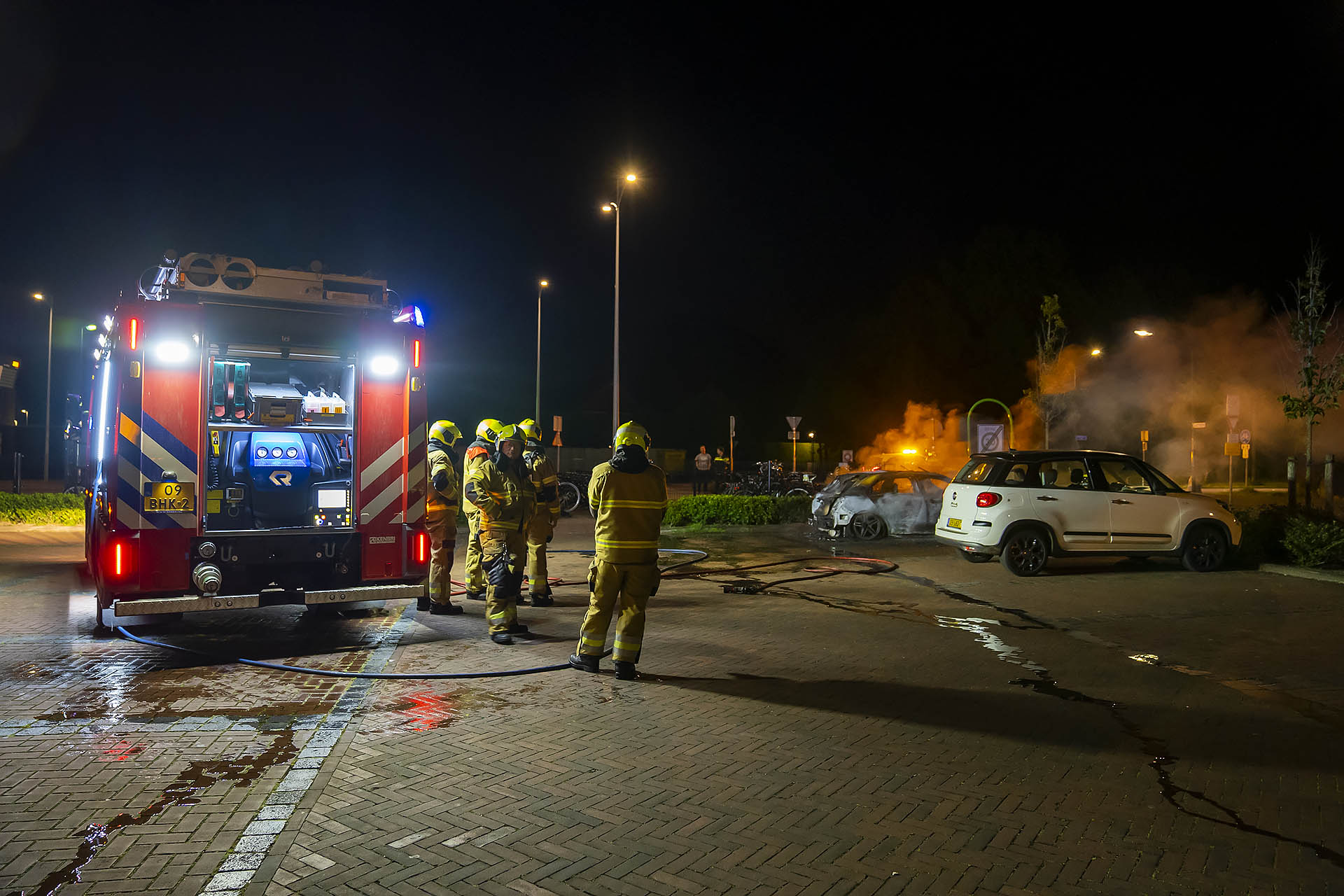 Rond 1.40 uur kwam bij de hulpdiensten de melding binnen van een autobrand aan de Hoogstraat in het dorp. Ter plaatse bleek op het Stationsplein een voertuig in lichterlaaie te staan. De brandweer was snel ter plaatse maar kon de auto niet meer redden.