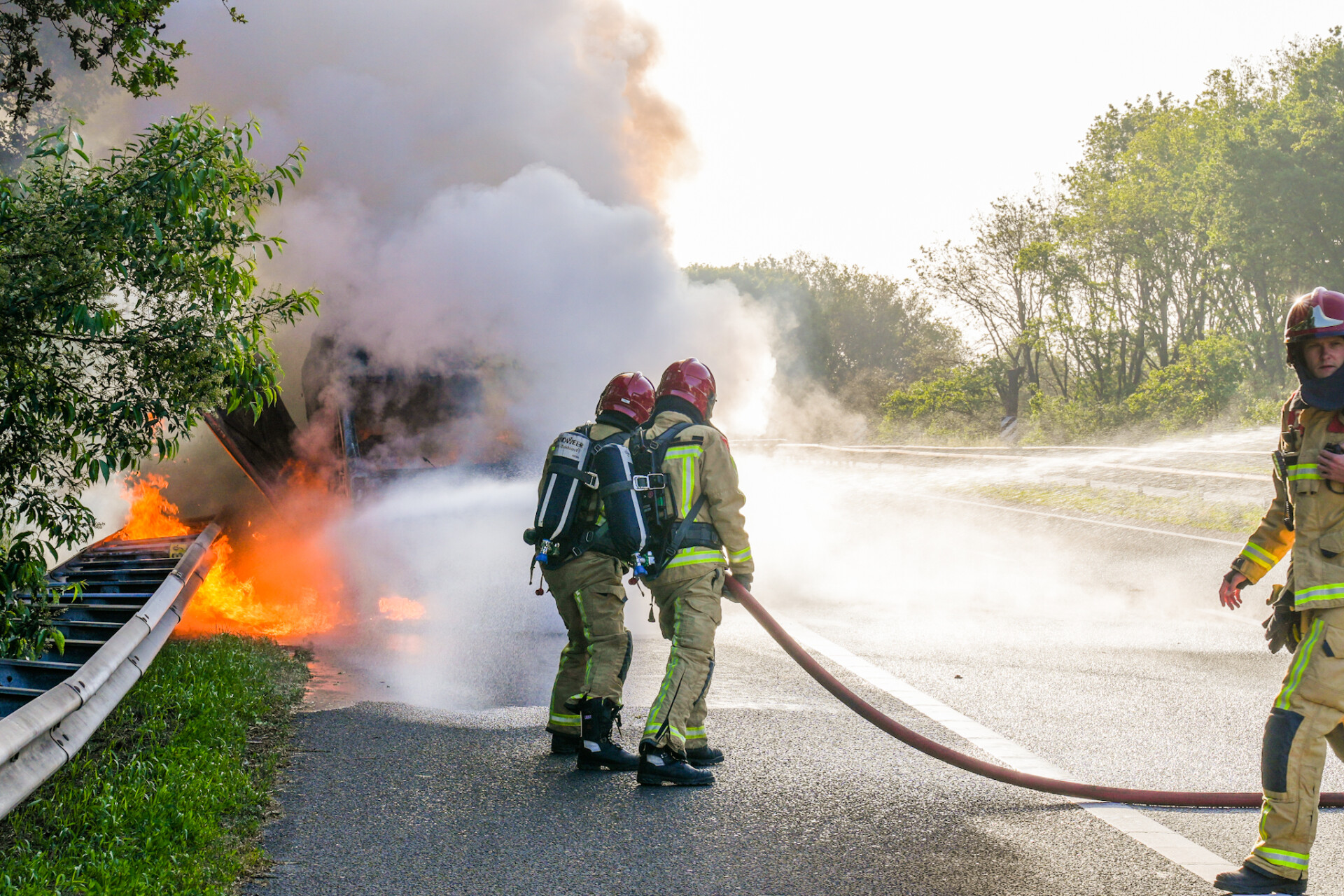 Volgens getuigen betrof het een busje van een dakdekkersbedrijf dat in brand vloog. Er zouden gasflessen aanwezig zijn geweest, wat de reden was voor de afsluiting van de snelweg in beide richtingen.