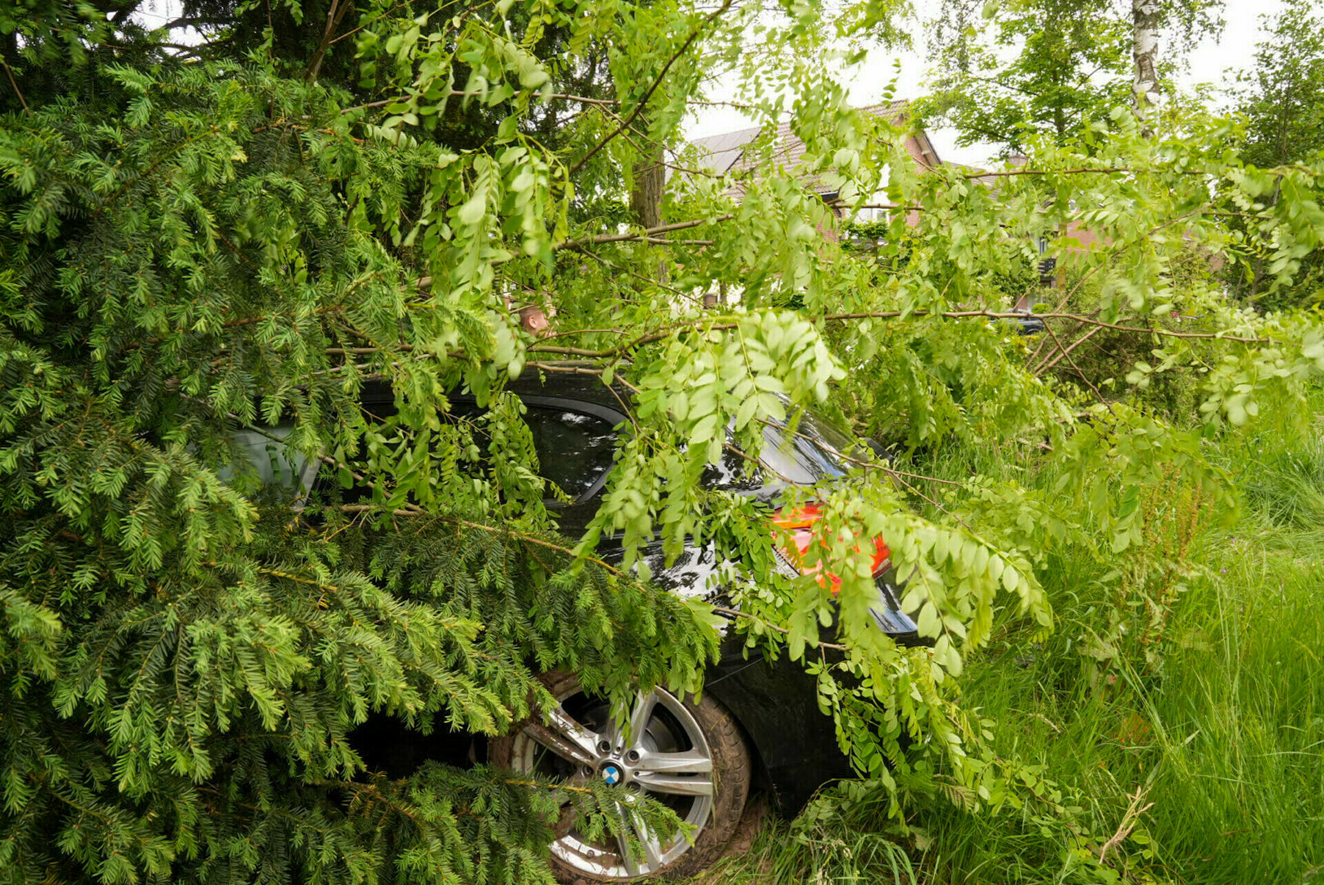 Man rijdt boom uit de grond en komt tegen andere tot stilstand